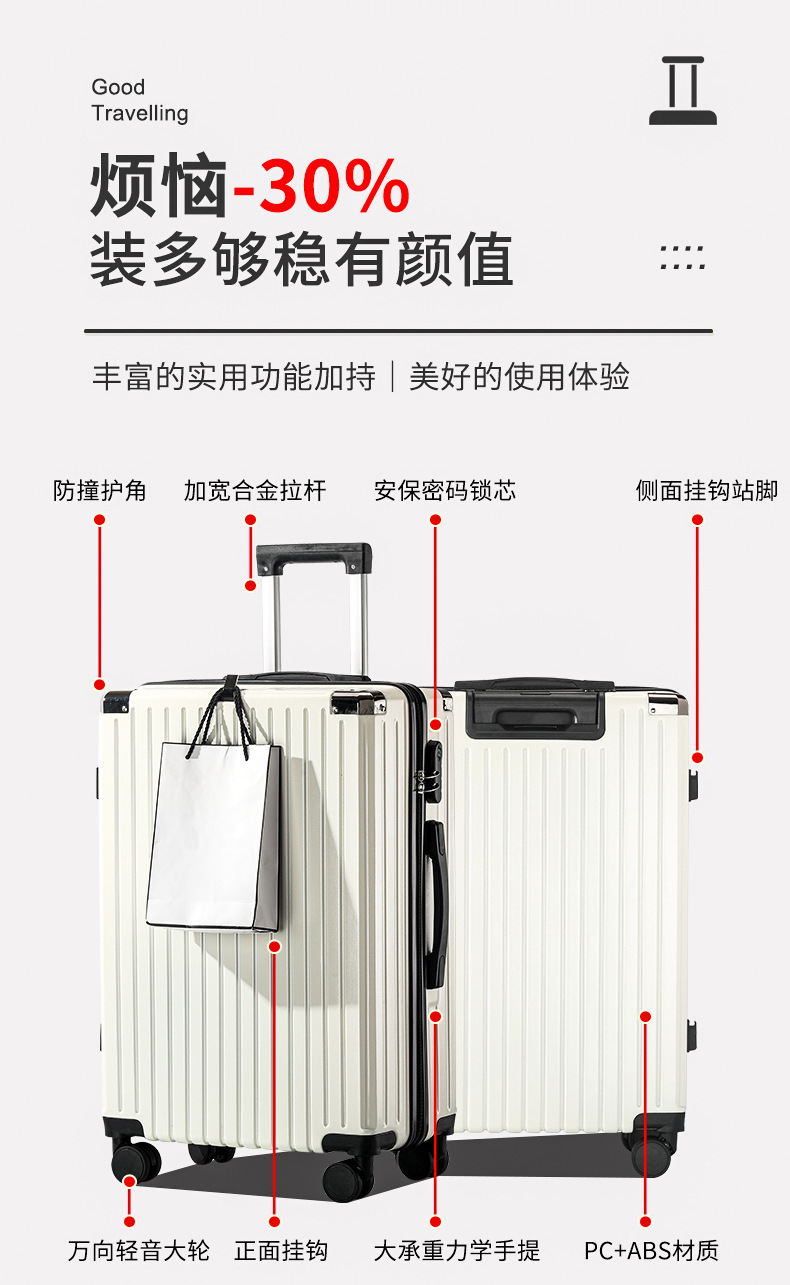 여학생용 여행가방, 이중 지퍼, 튼튼한 트롤리 여행가방, 범용 바퀴, 남성용 내구성 있는 학생 비밀번호 상자스토어 가기