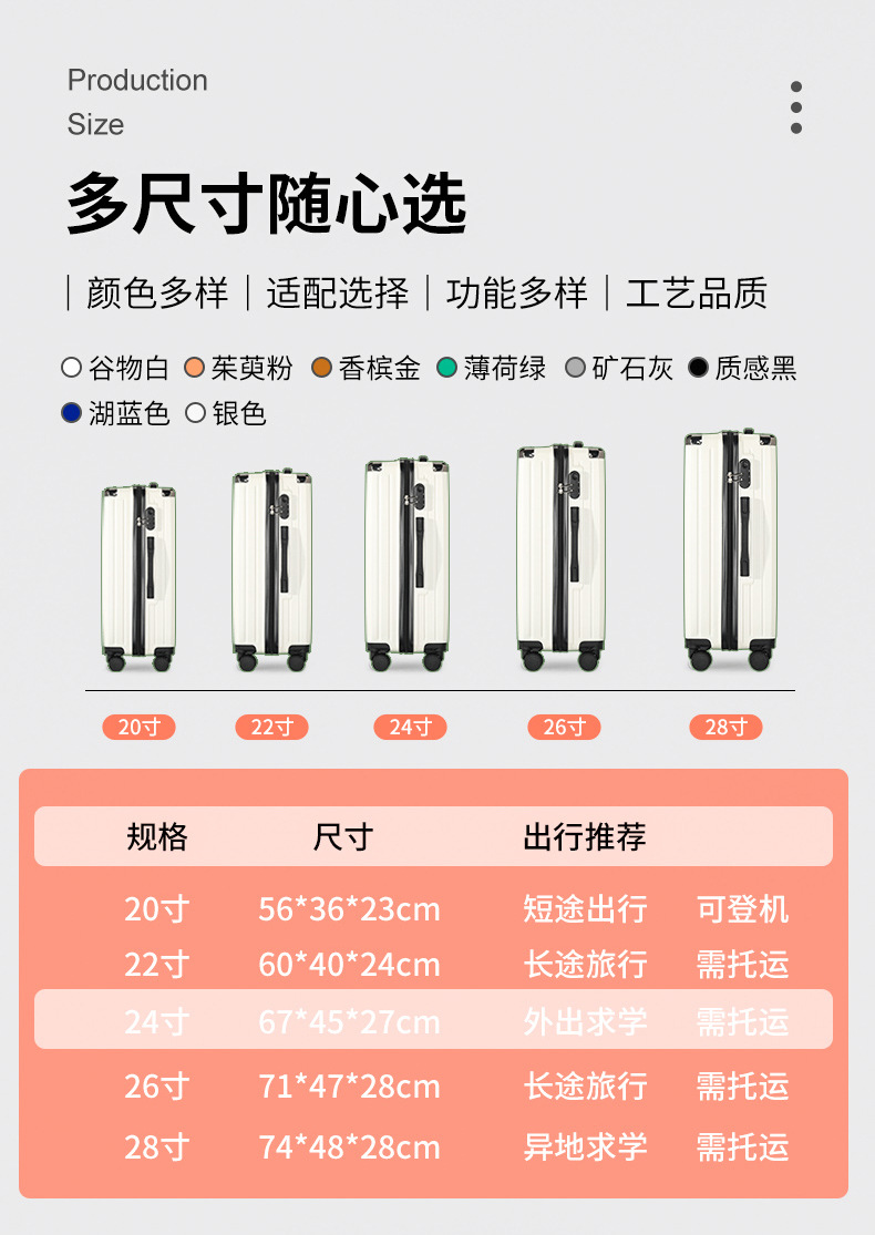 여학생용 여행가방, 이중 지퍼, 튼튼한 트롤리 여행가방, 범용 바퀴, 남성용 내구성 있는 학생 비밀번호 상자
