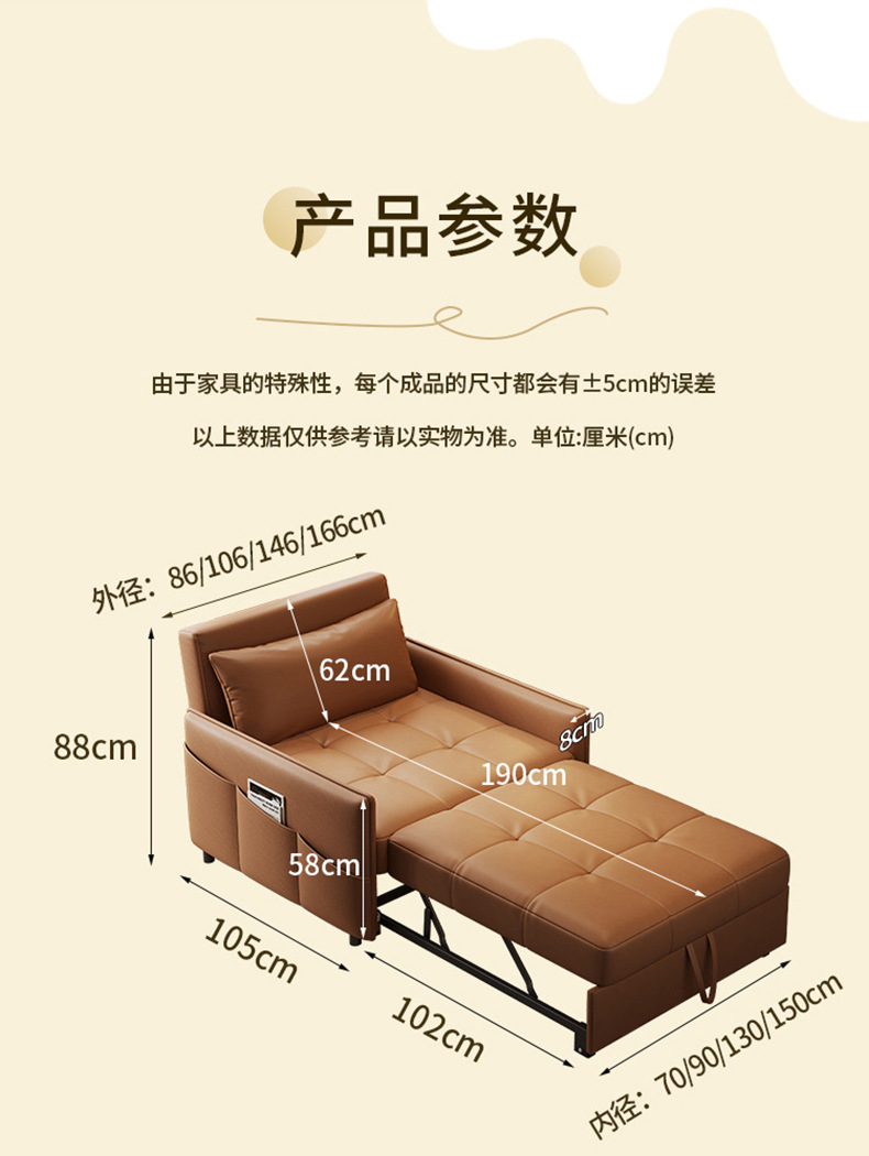 접이식 다기능 소파 베드, 거실 겸용 침대, 소형 아파트, 설치가 필요 없는 1인용 가죽 소파, 외국 무역 공장스토어 가기