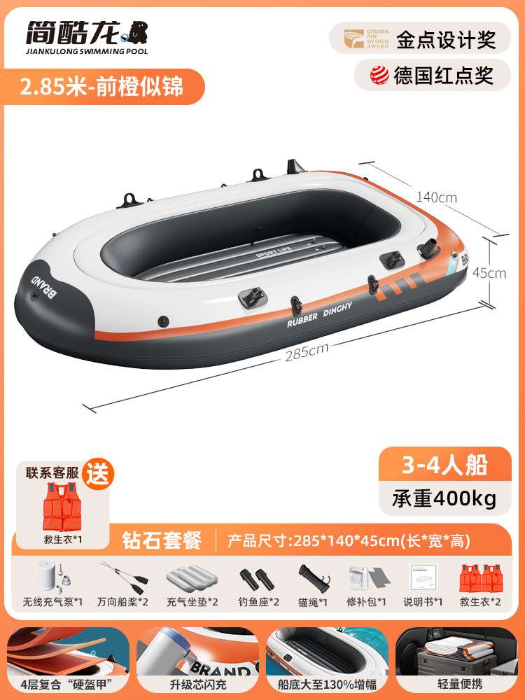 • 2.8m Yuechuan Orange 3-4인용 보트 [모델] 무선 펌프 구명조끼 3개