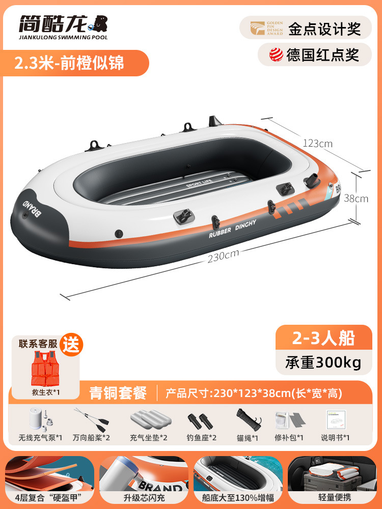 • 2.3m Yuechuan Orange 2-3인용 보트 [모델] 무선 펌프 구명조끼 3개