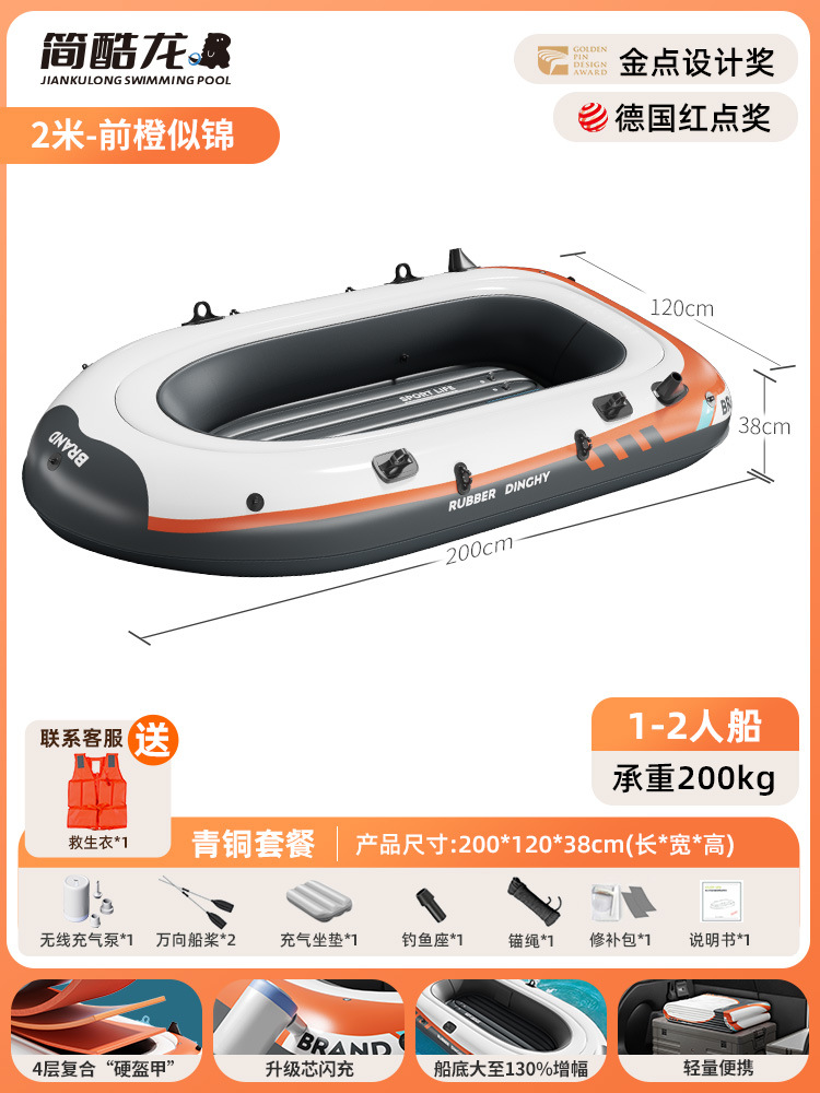 • 2.3m Yuechuan Orange 2-3인용 보트 [다이아몬드 모델] 무선 펌프 구명조끼 2개