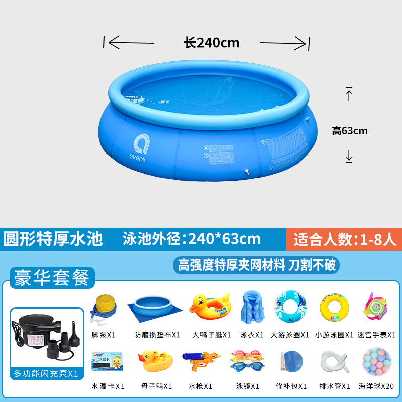 • 특대두께 : 직경 240*높이 63cm 실용패키지 + 커버천 + 필터펌프