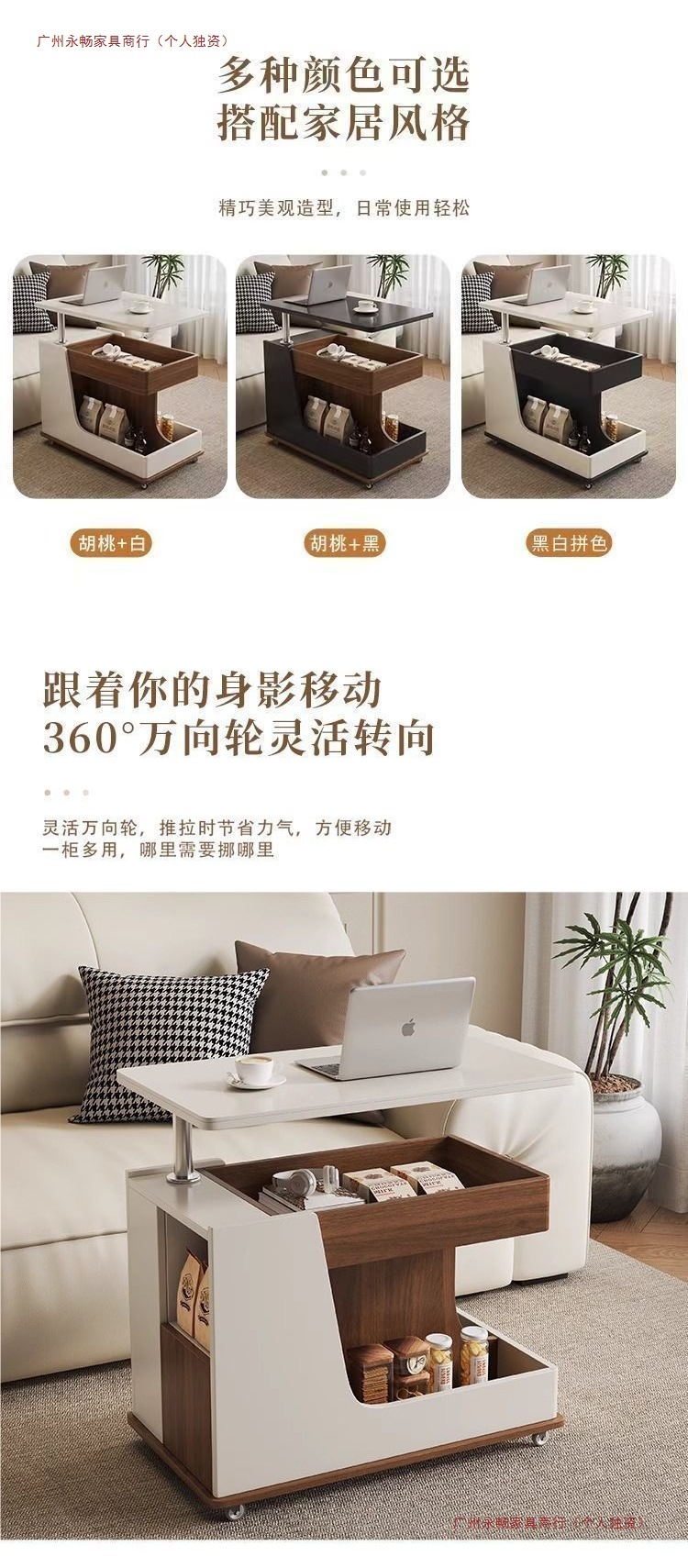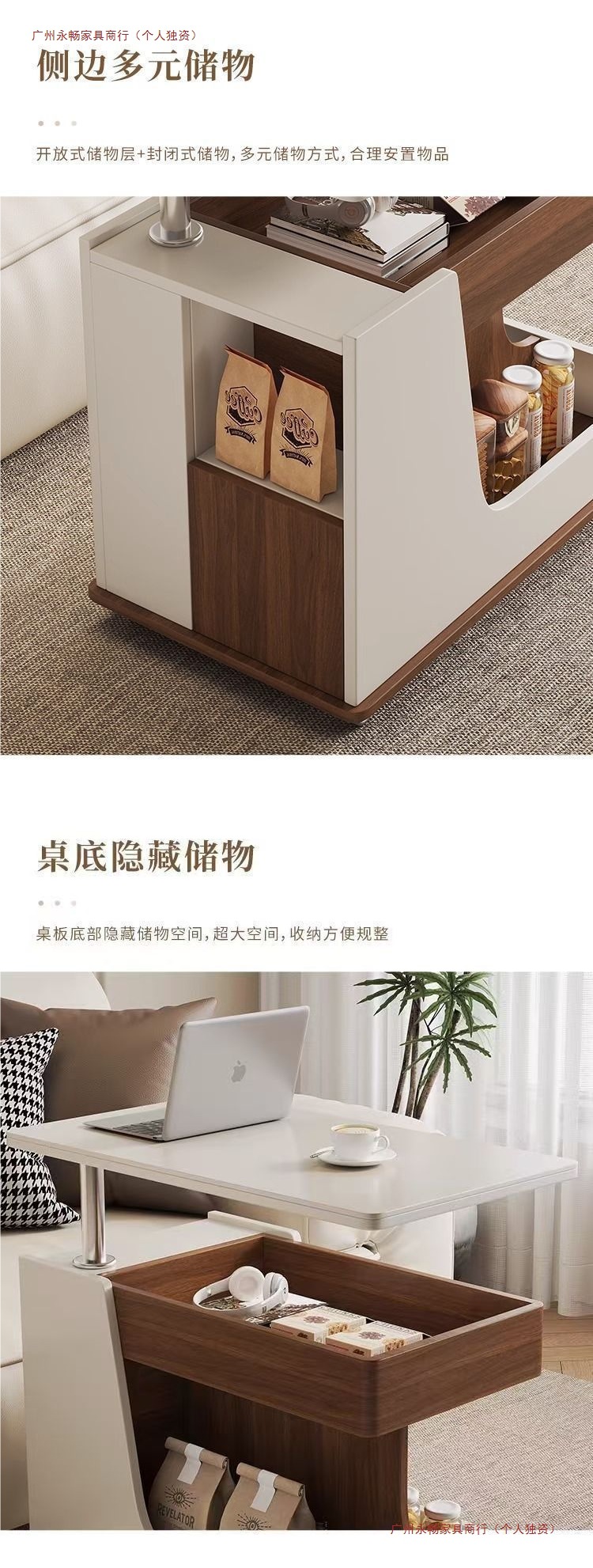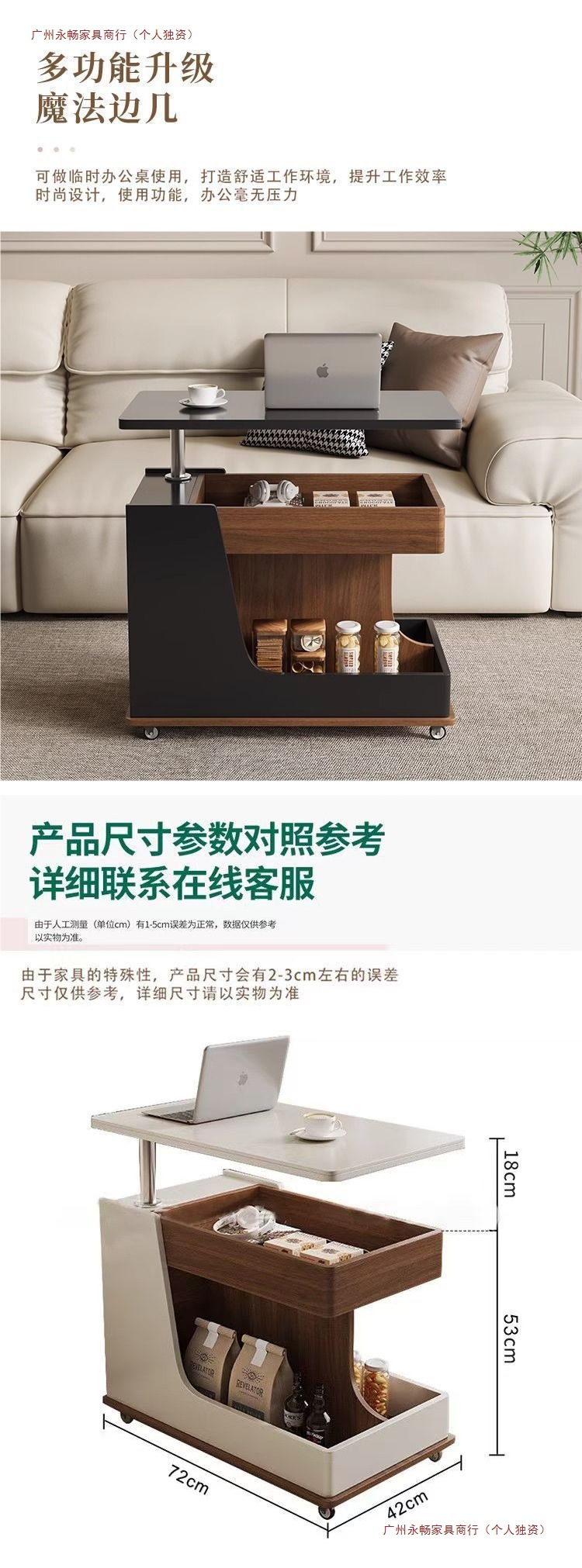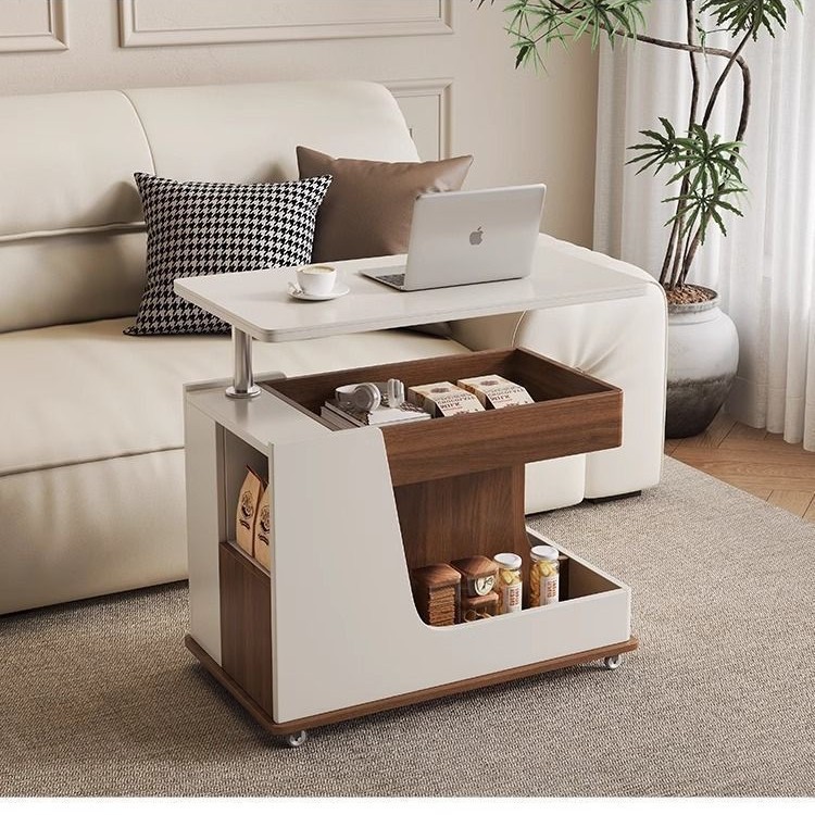 작은 아파트 프랑스 모바일 소파 커피 테이블 고급 거실 다기능 트롤리 리프팅 현대적인 간단한 사이드 홈