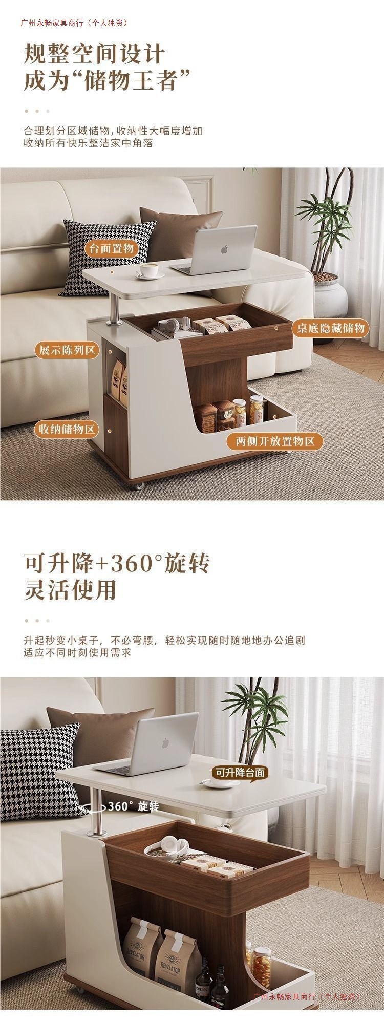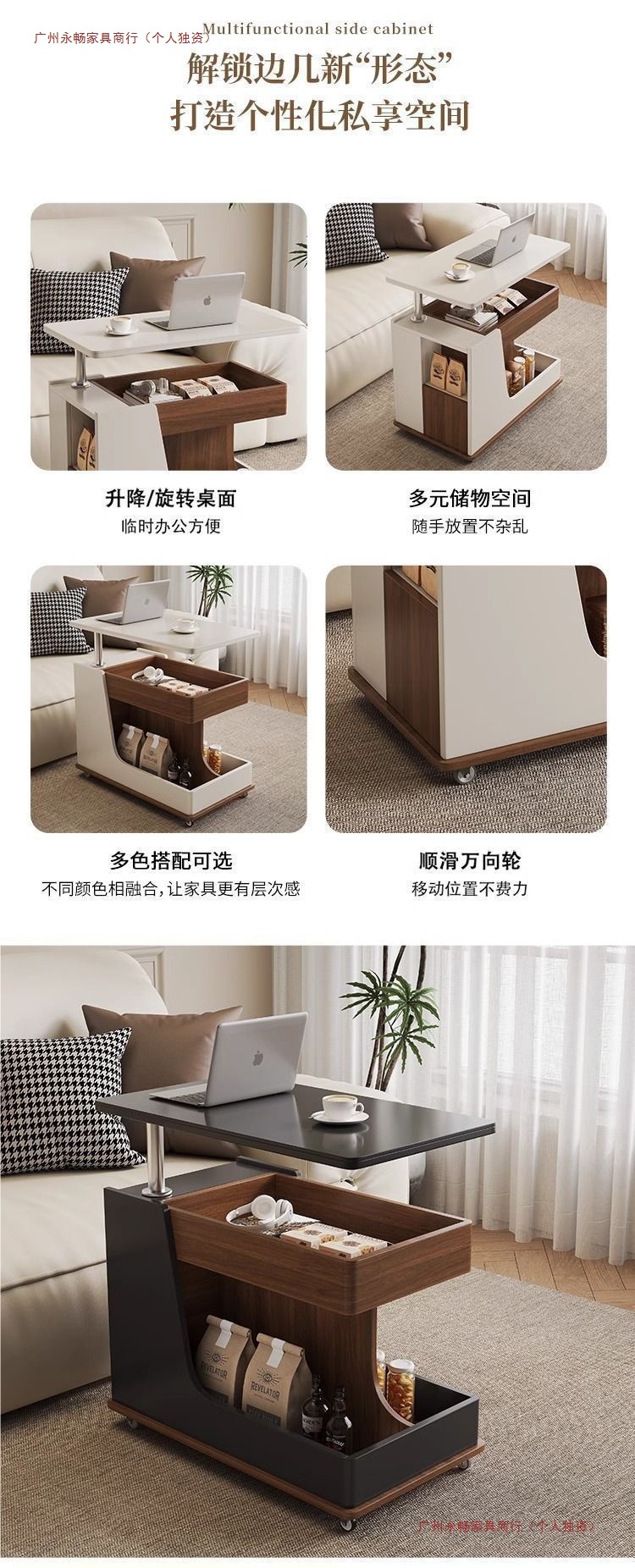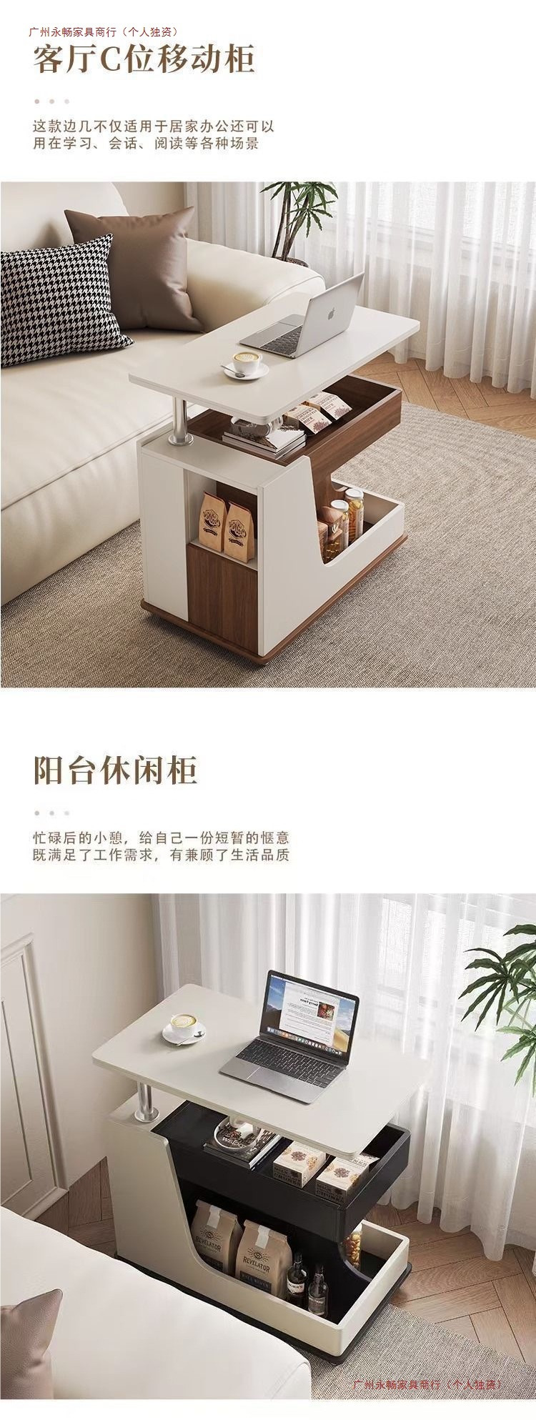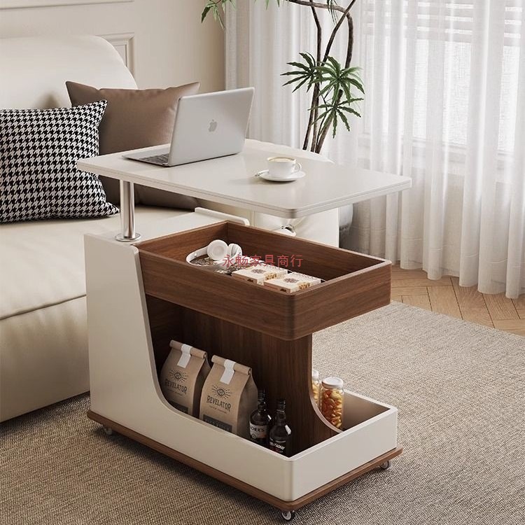 작은 아파트 프랑스 모바일 소파 커피 테이블 고급 거실 다기능 트롤리 리프팅 현대적인 간단한 사이드 홈