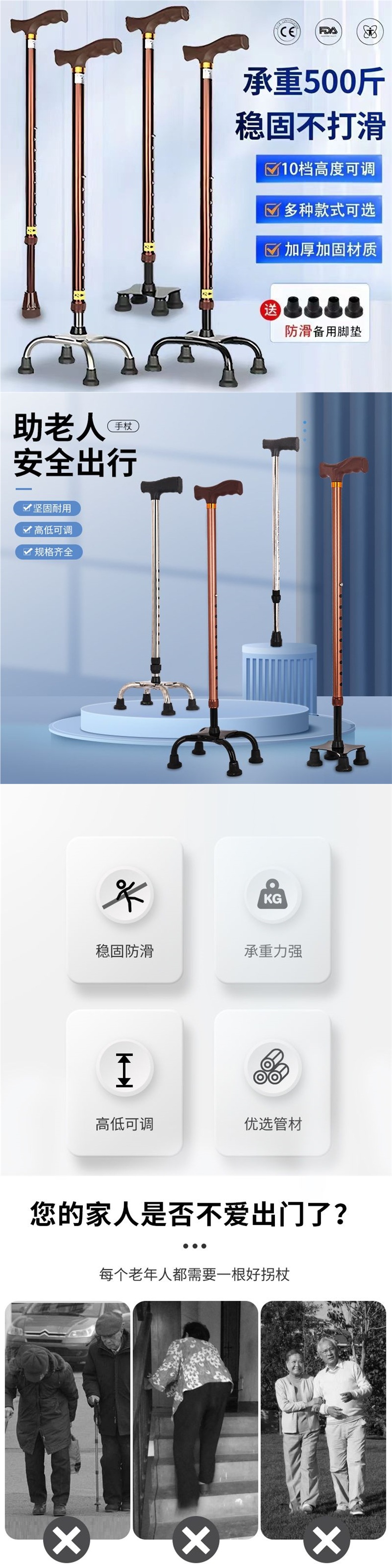노인용 두꺼운 미끄럼 방지 지팡이, 장애인용 지팡이, 4각 단일 발 접이식 등산 지팡이스토어 가기
