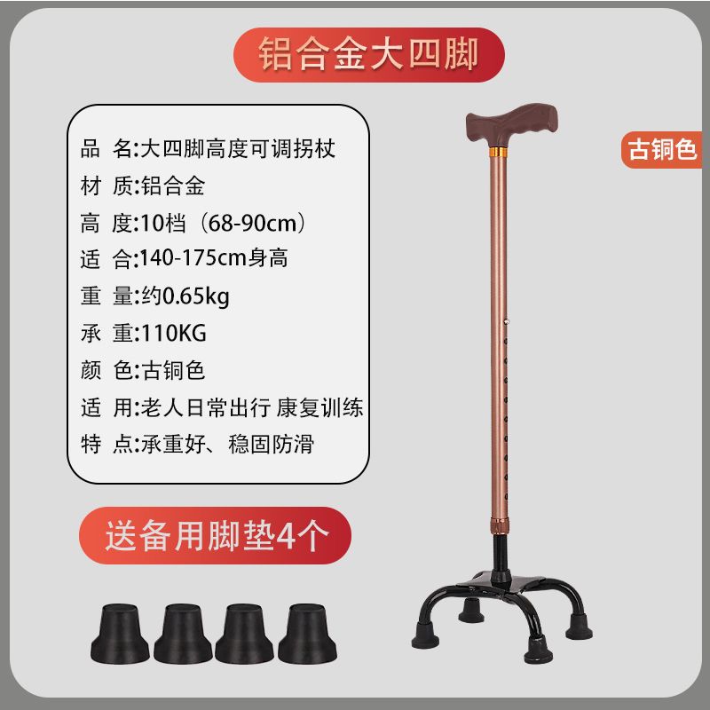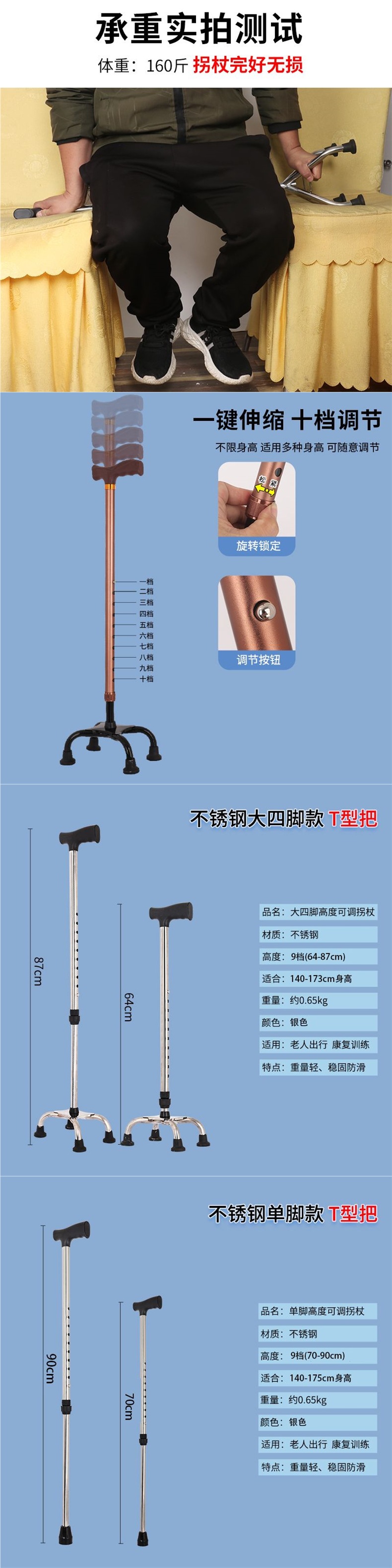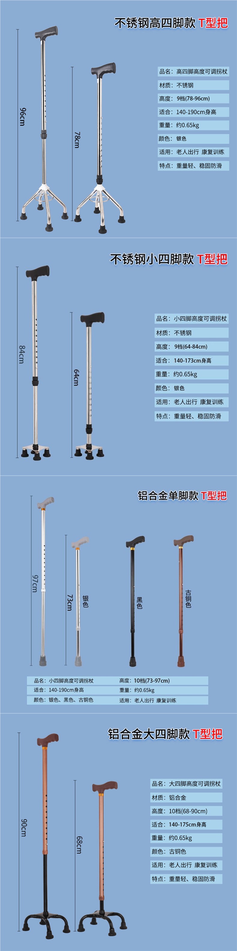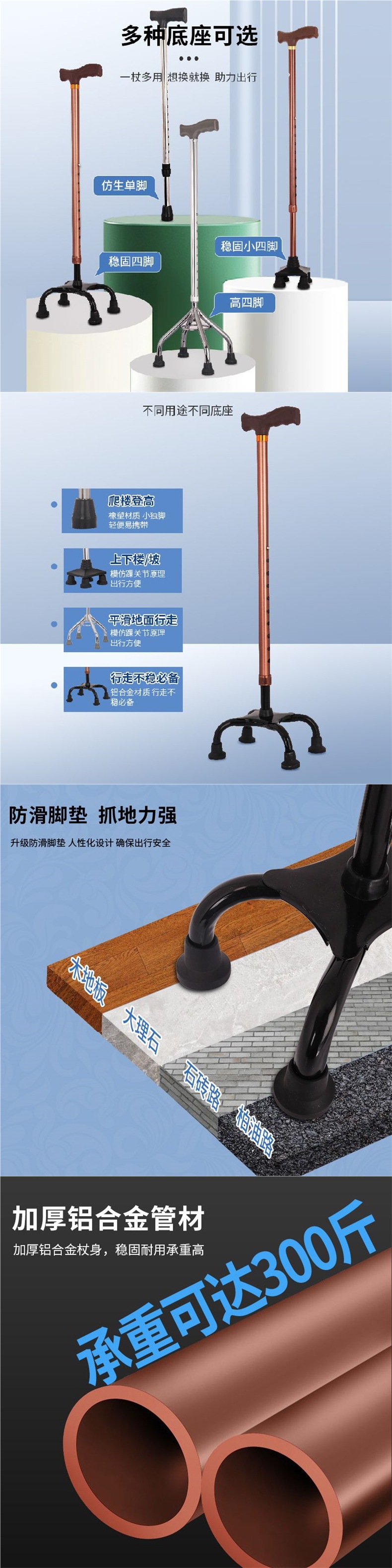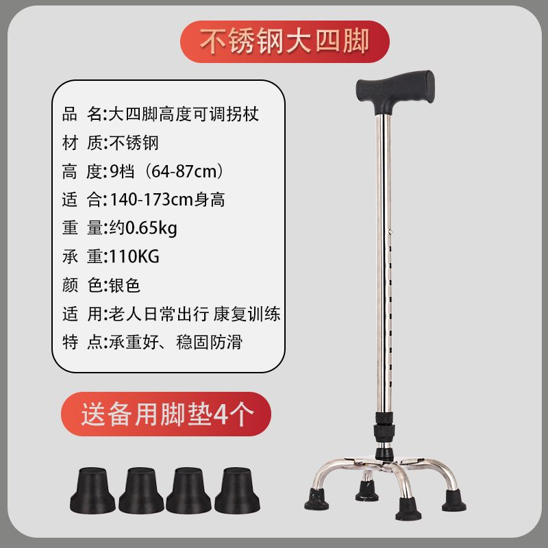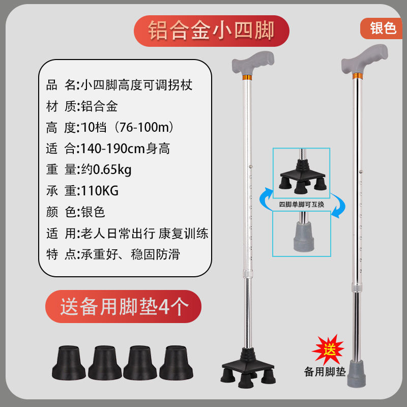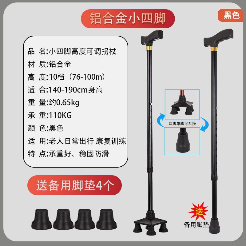노인용 두꺼운 미끄럼 방지 지팡이, 장애인용 지팡이, 4각 단일 발 접이식 등산 지팡이