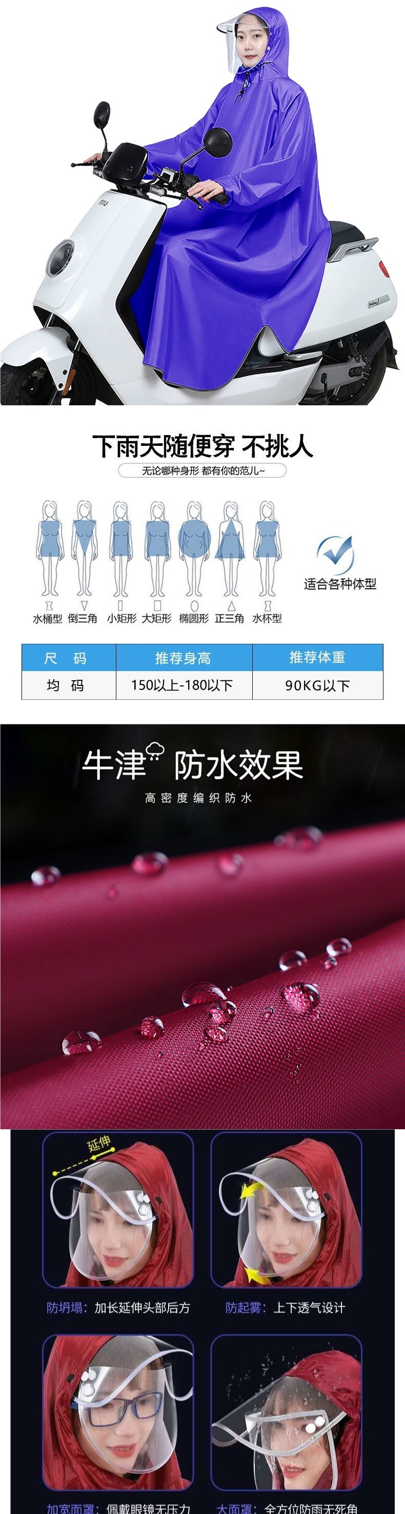 소매가 있는 판초, 전기 자동차, 오토바이 비옷, 싱글 남성 및 여성, 성인, 사이클링을 위한 얼굴 보호 기능이 있는 두꺼운스토어 가기