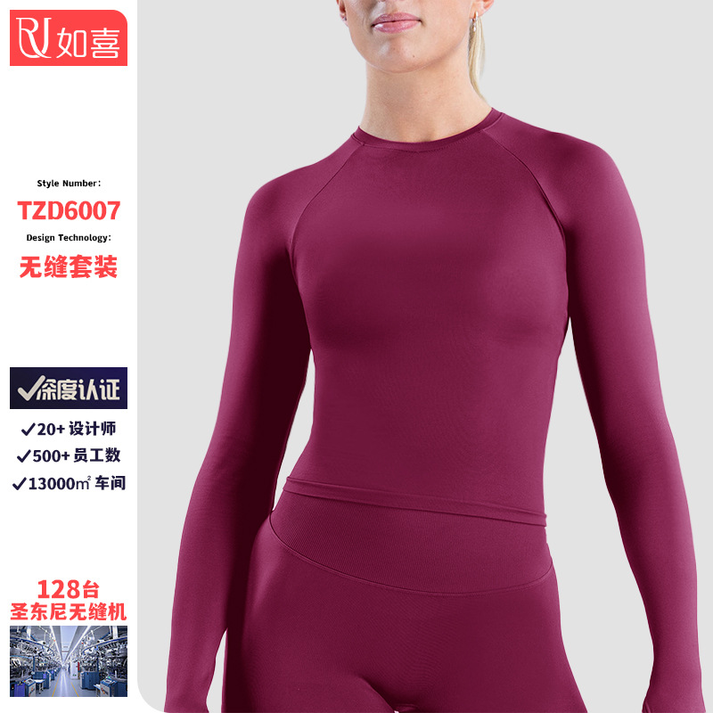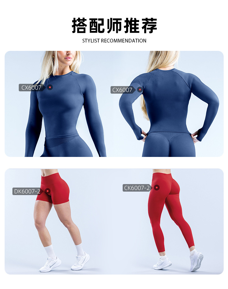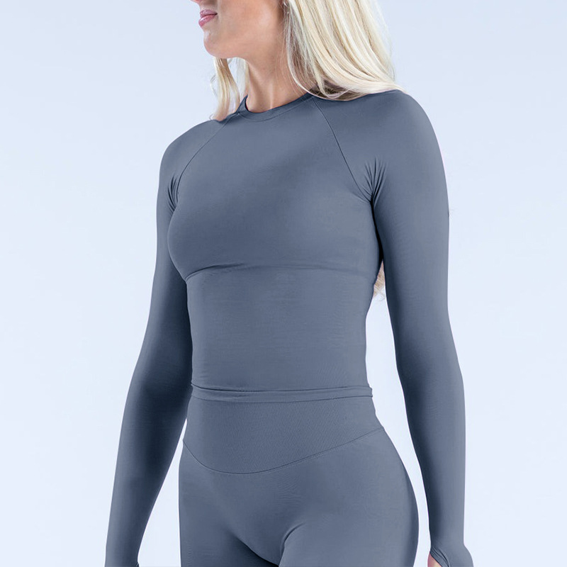 디파인 크로스보더 심리스 긴팔 요가복 라운드넥 스포츠 탑 타이트 스포츠 아웃도어 피트니스웨어 세트 여성용스토어 가기