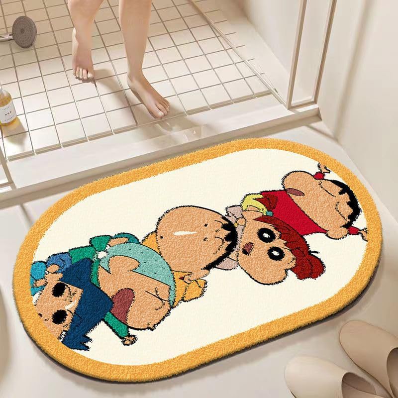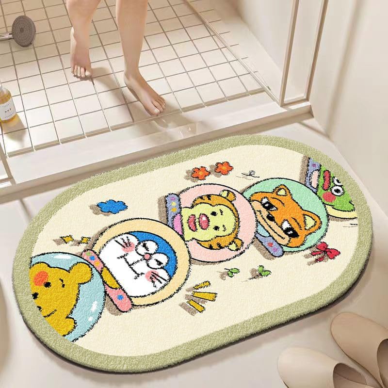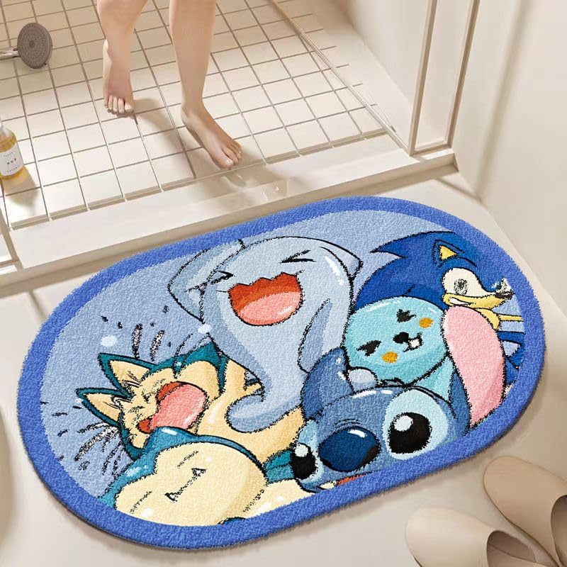 귀여운 만화 스티치 타원형 바닥 매트 욕실 두꺼운 흡수성 발 매트 얼룩 방지 입구 매트 욕실 문 매트