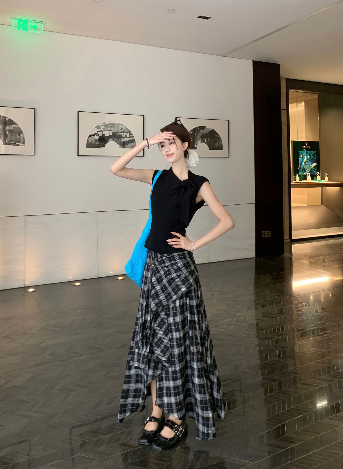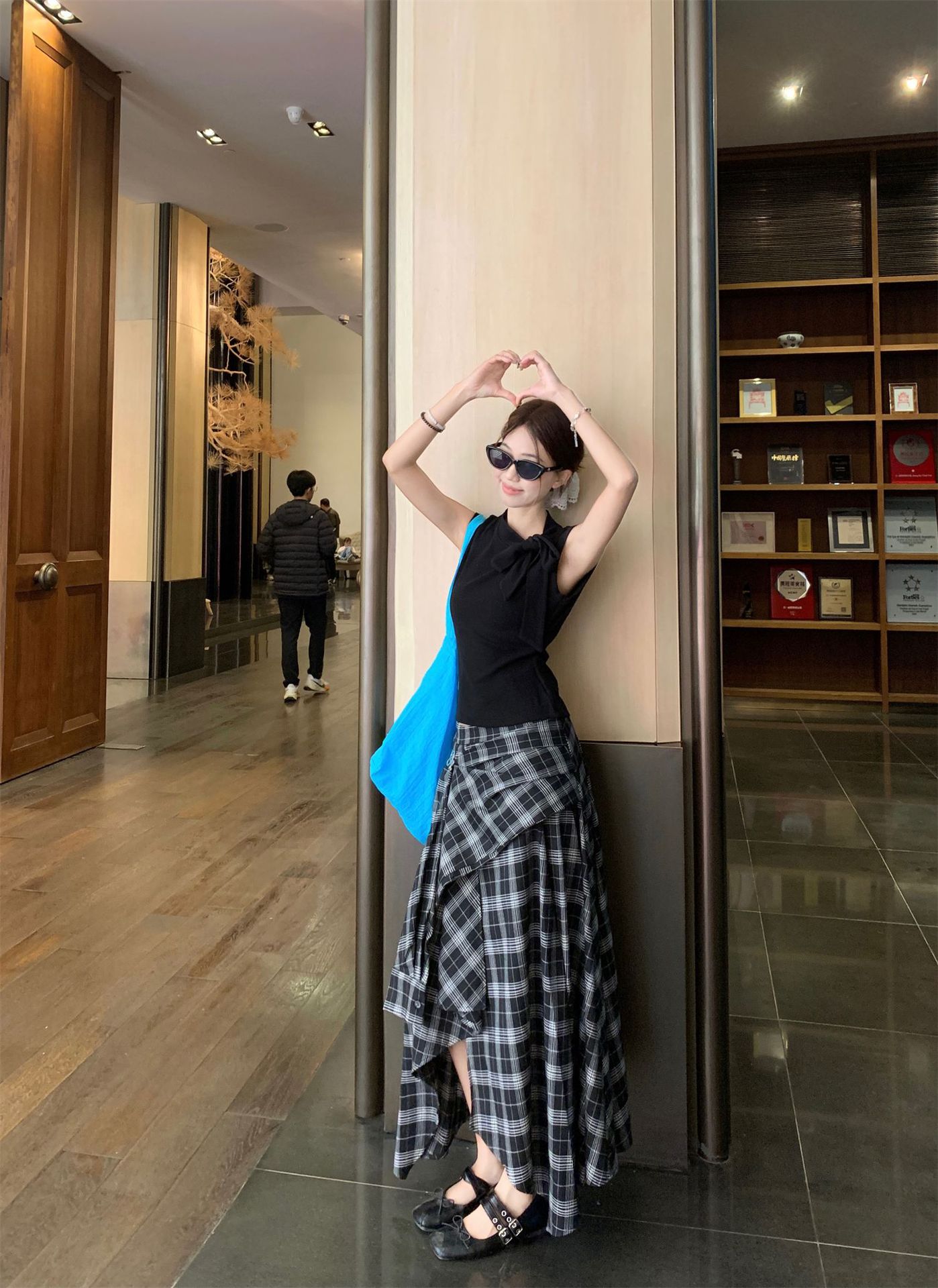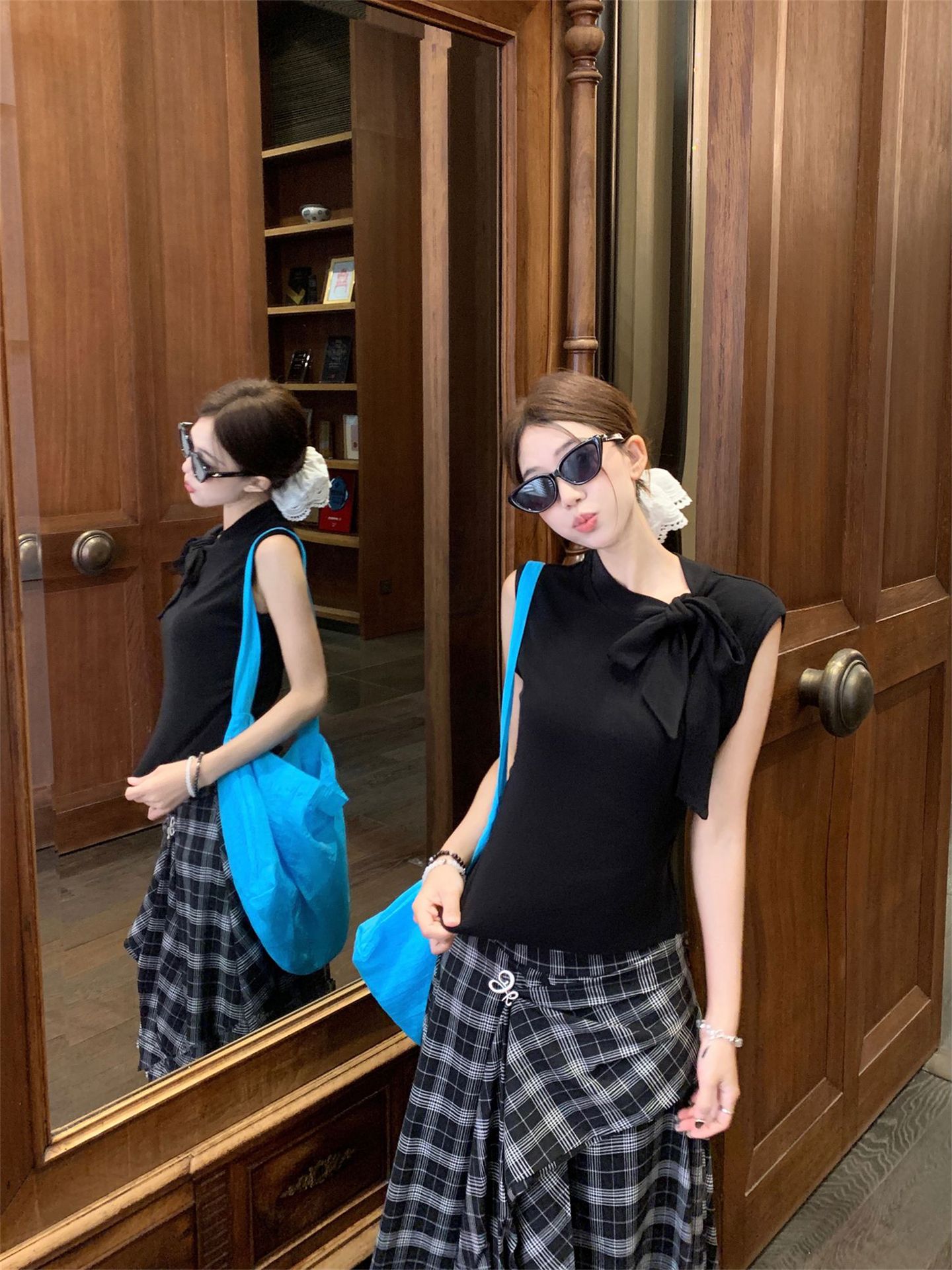 여성을위한 한국 패션 디자인 리본 민소매 티셔츠 2025 여름 새로운 슬림 피트 캐주얼 다용도 탑
