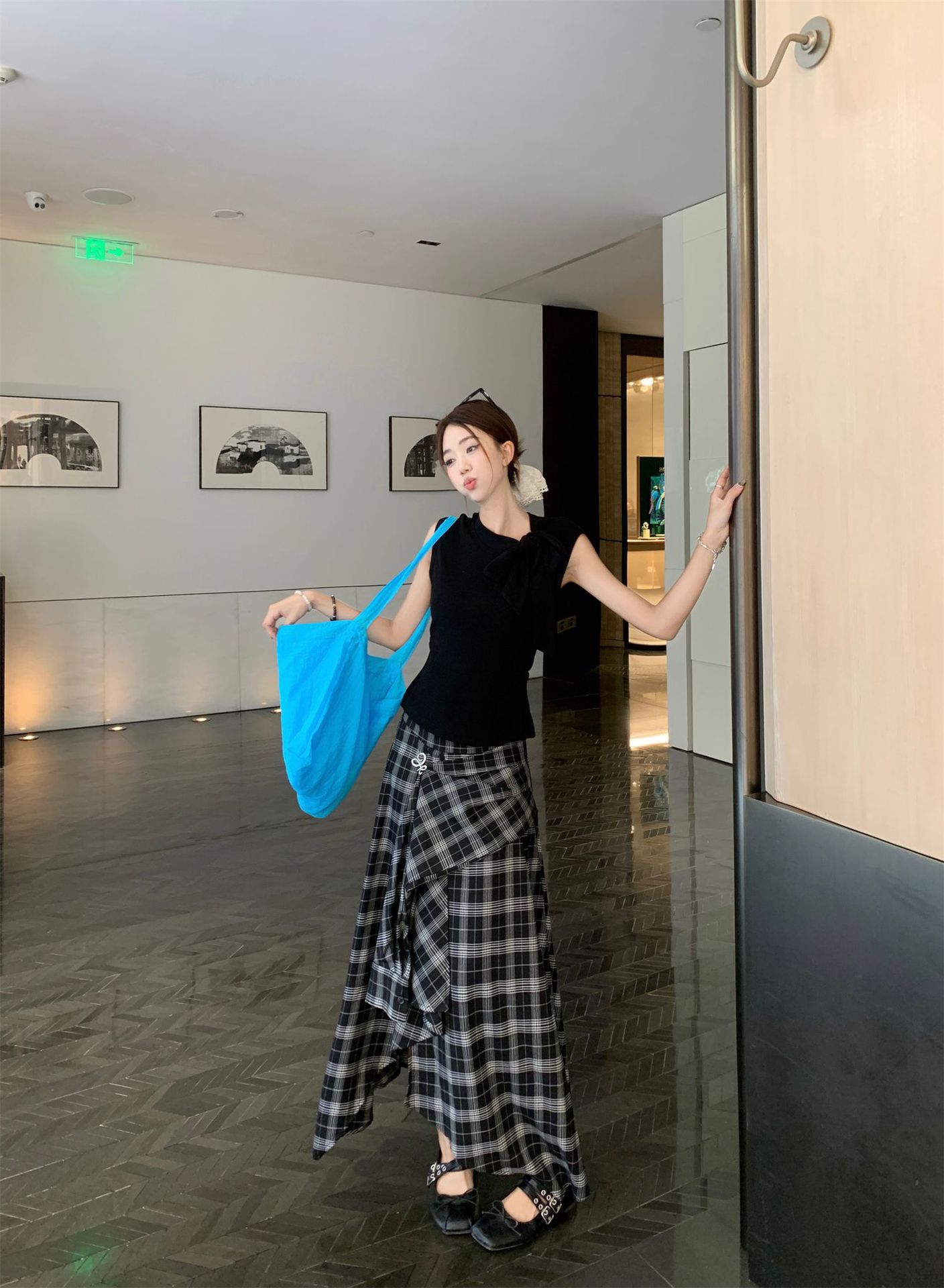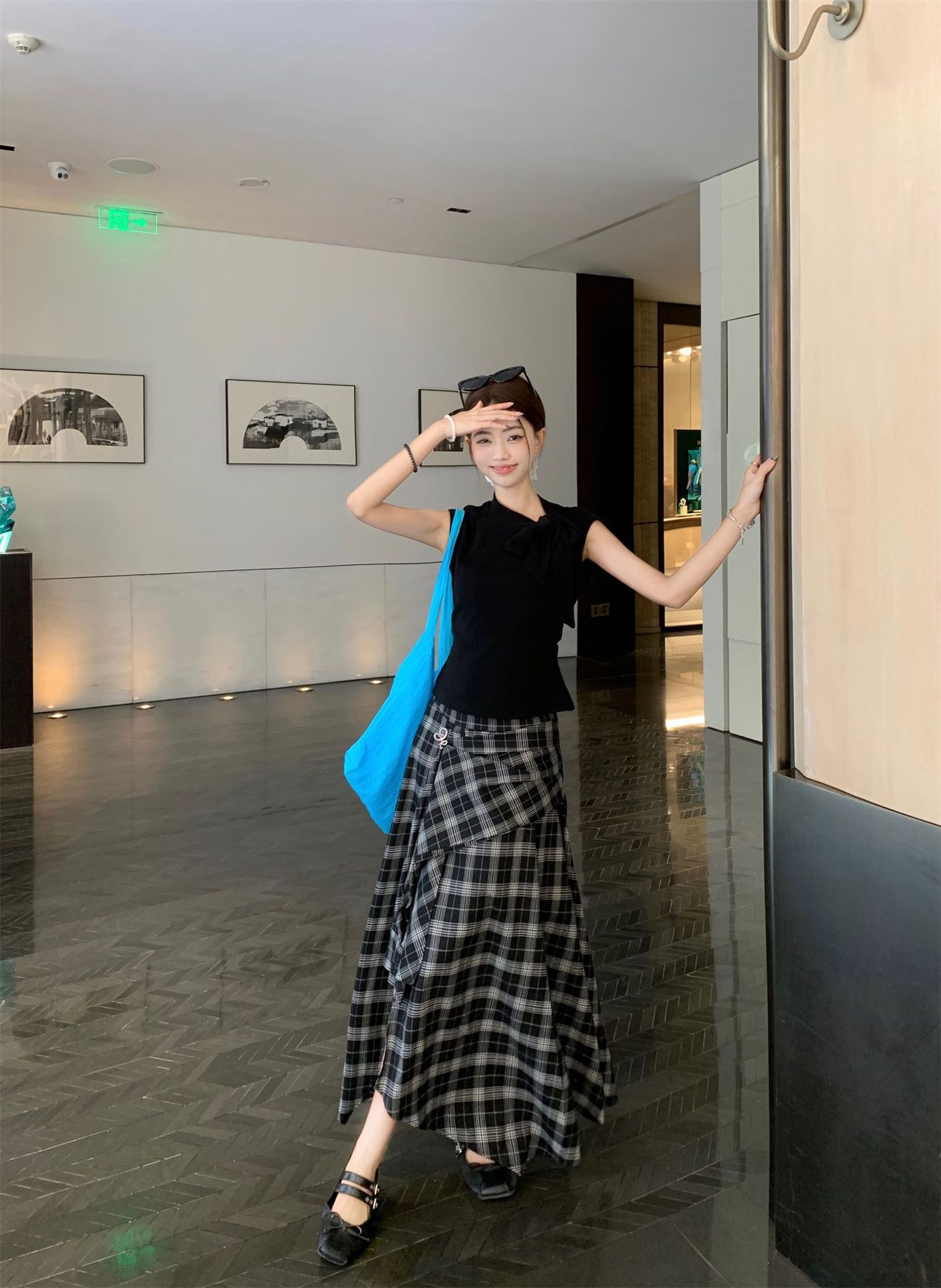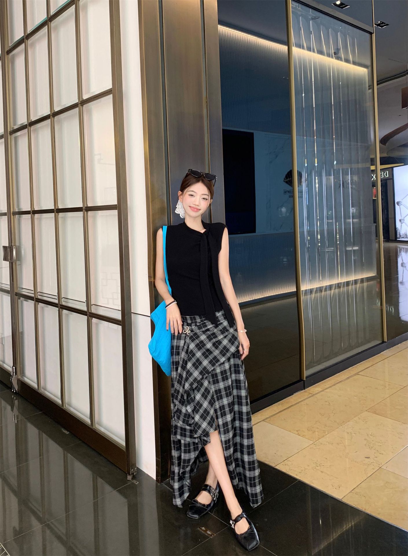 여성을위한 한국 패션 디자인 리본 민소매 티셔츠 2025 여름 새로운 슬림 피트 캐주얼 다용도 탑