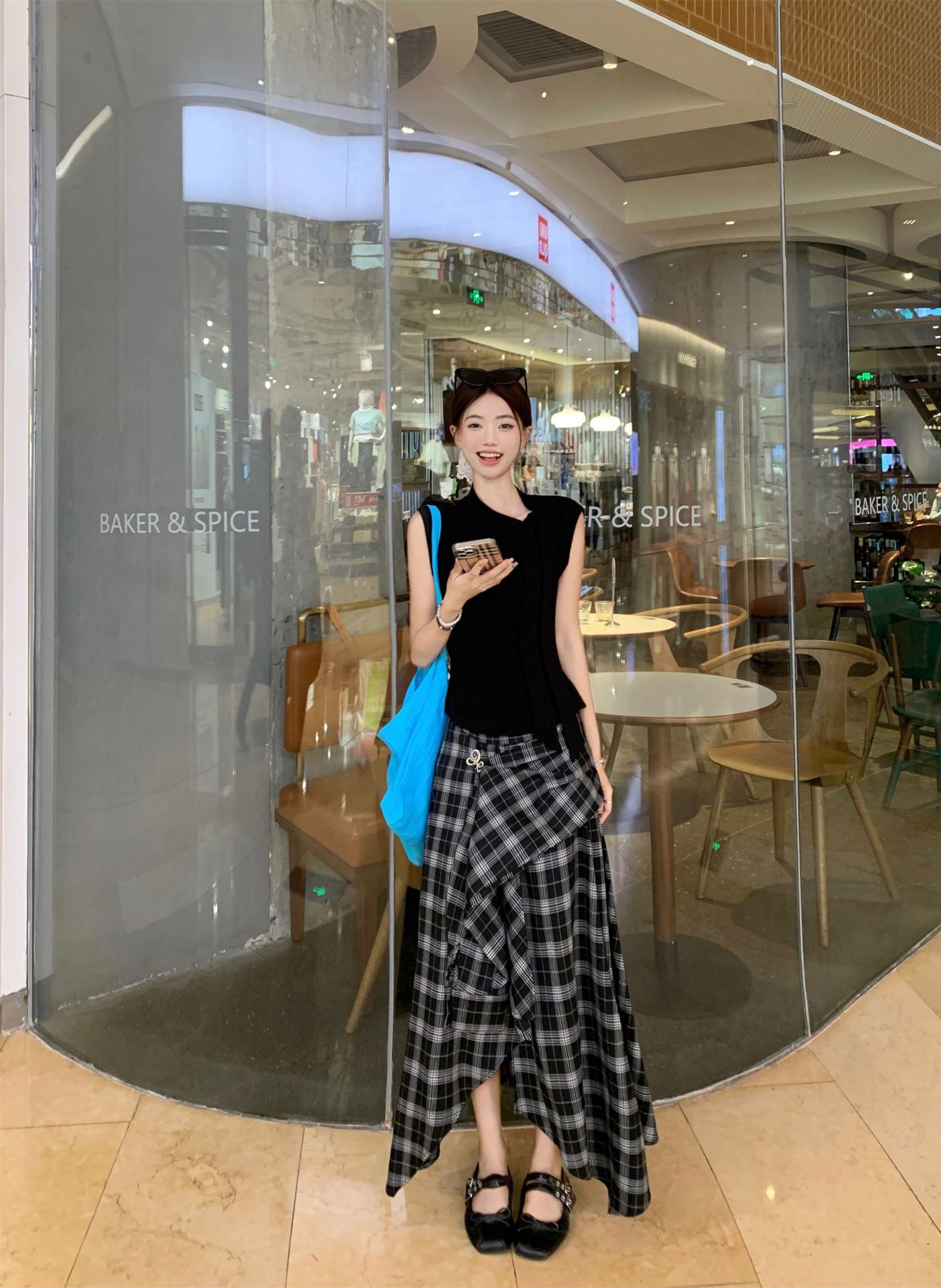 여성을위한 한국 패션 디자인 리본 민소매 티셔츠 2025 여름 새로운 슬림 피트 캐주얼 다용도 탑스토어 가기