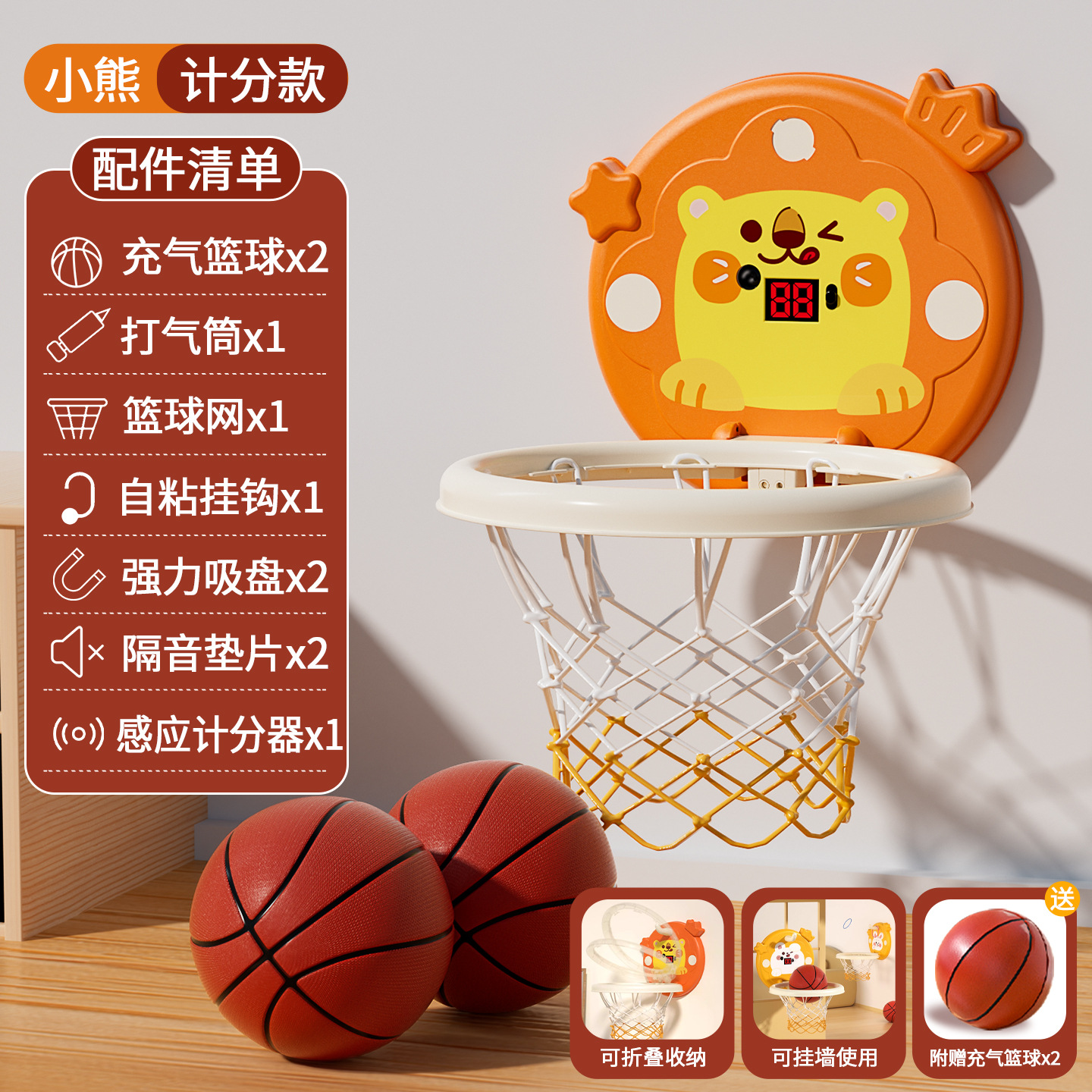 • [페룰/득점 모델] 리틀 베어(농구공 2개 + 펌프 + 흡입 컵 + 배터리 + 드라이버 무료)