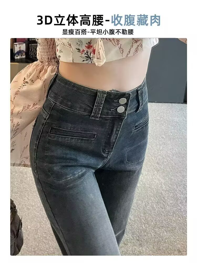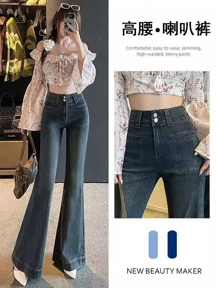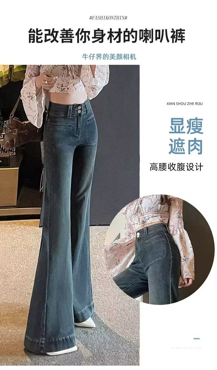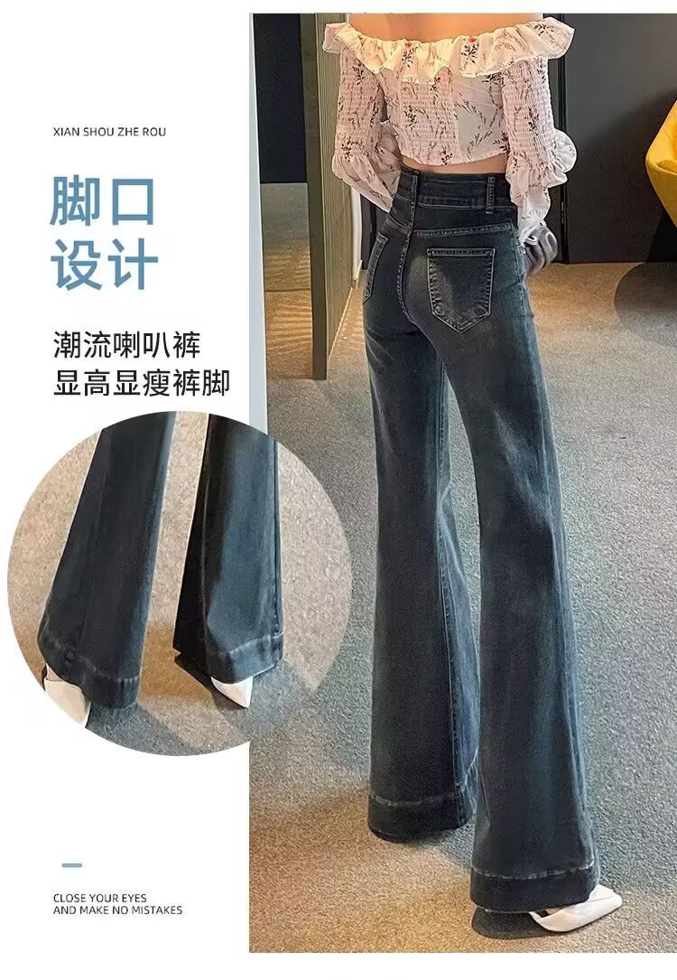 가을 여성용 홍콩 스타일 팬츠, 뉴탱 청바지, 바닥 길이 바지, 키가 큰 사람들을 위한 트렌디한 롱 와이드 팬츠스토어 가기