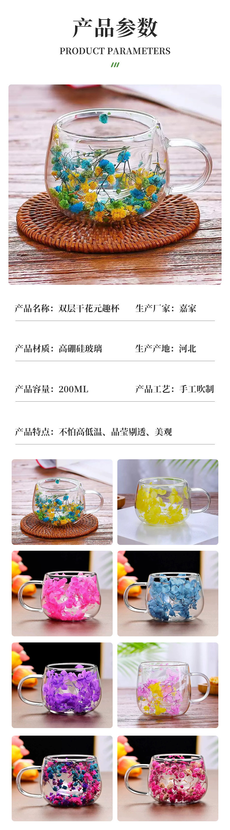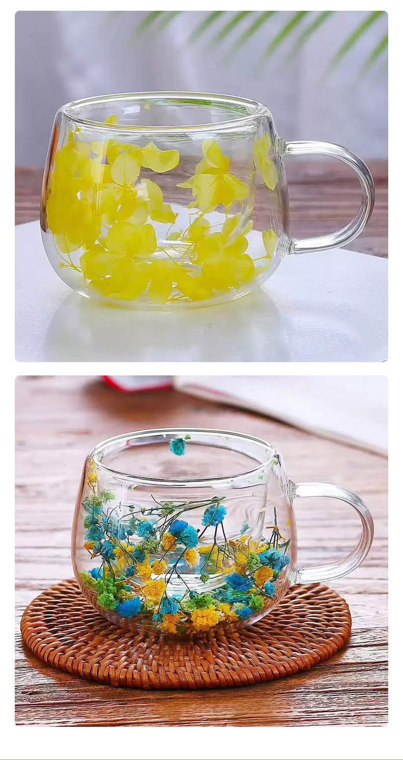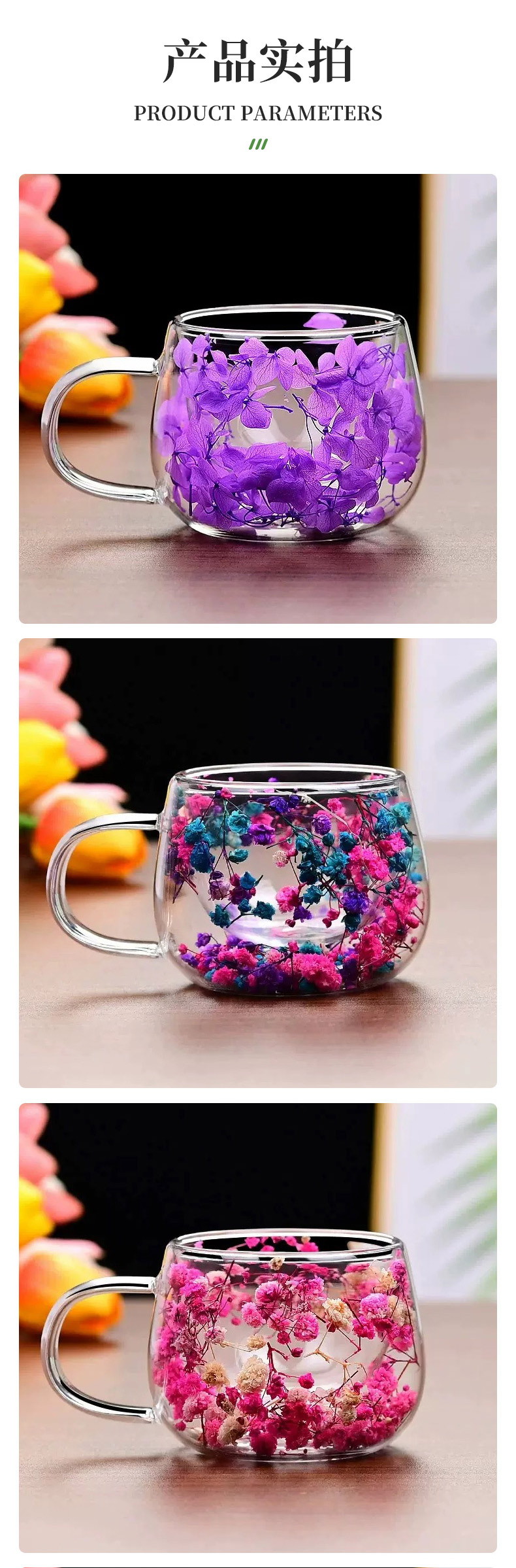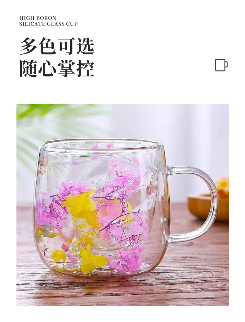 이중층 드라이플라워 원형 컵 판매 인기 있는 진짜 꽃 이중층 유리컵 기념품 고붕규산 심플 커피컵스토어 가기