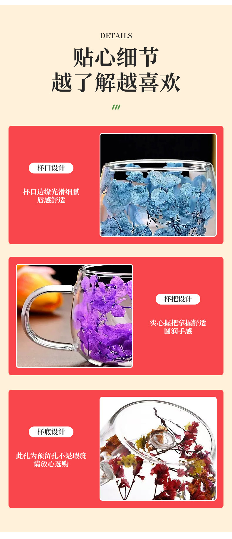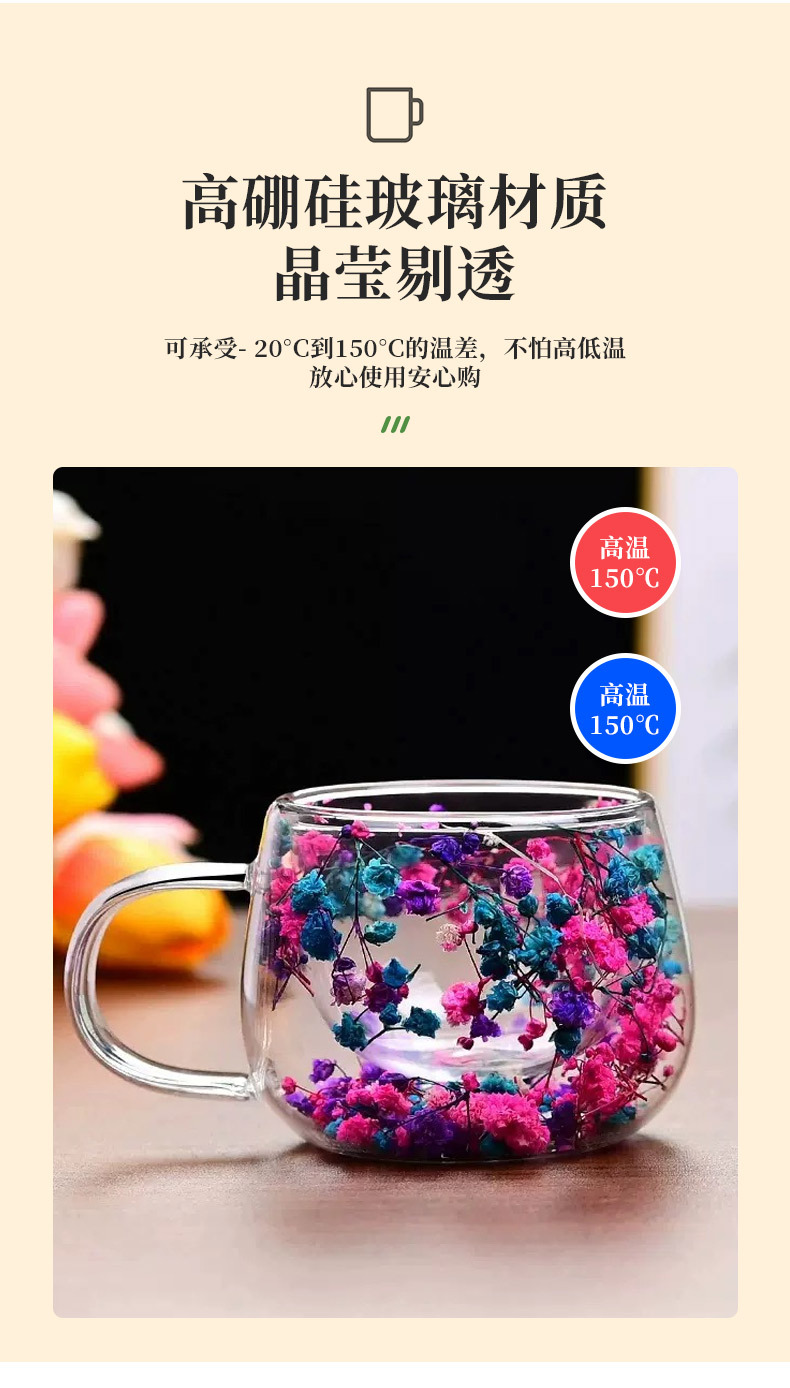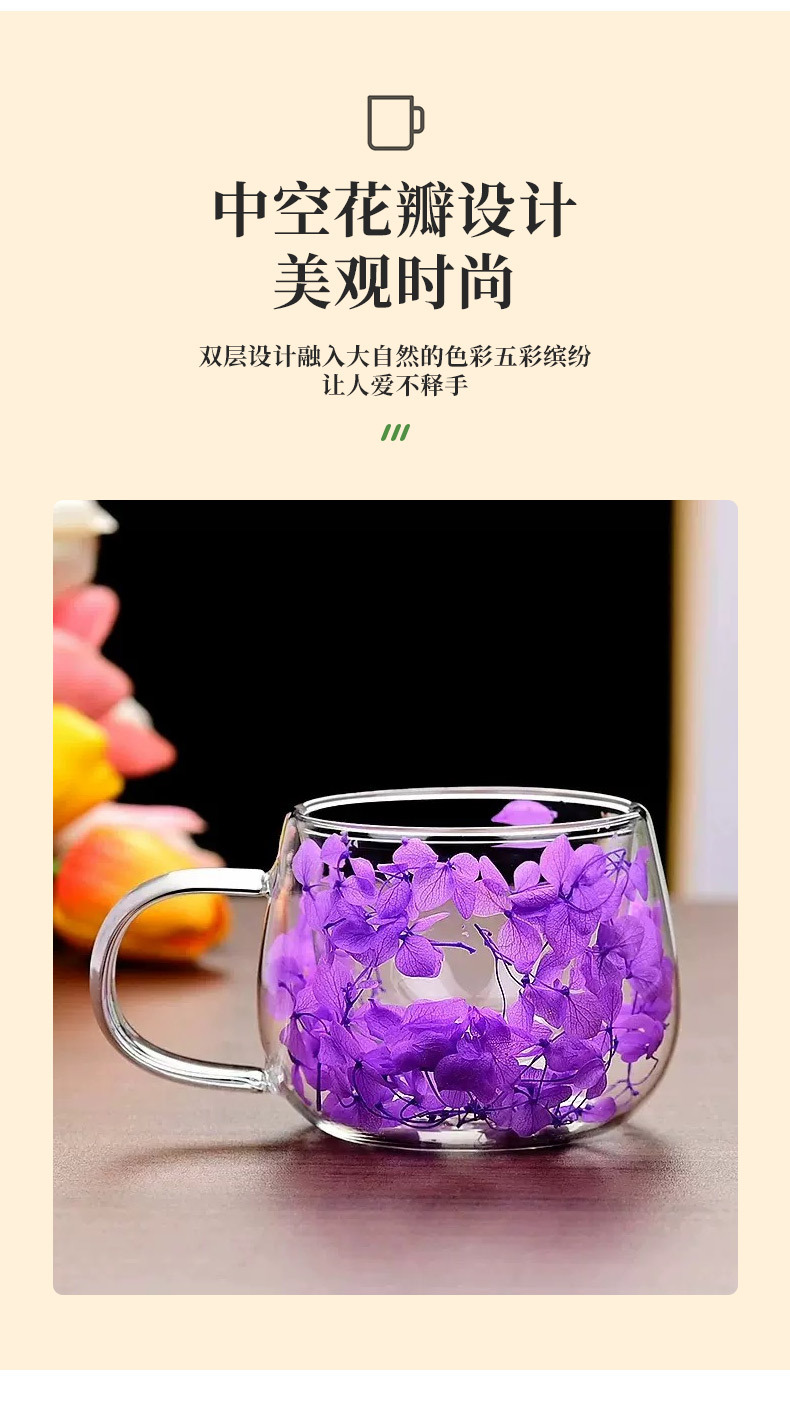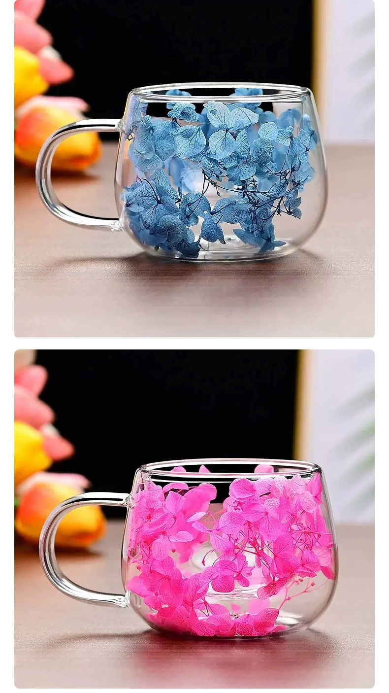 이중층 드라이플라워 원형 컵 판매 인기 있는 진짜 꽃 이중층 유리컵 기념품 고붕규산 심플 커피컵스토어 가기