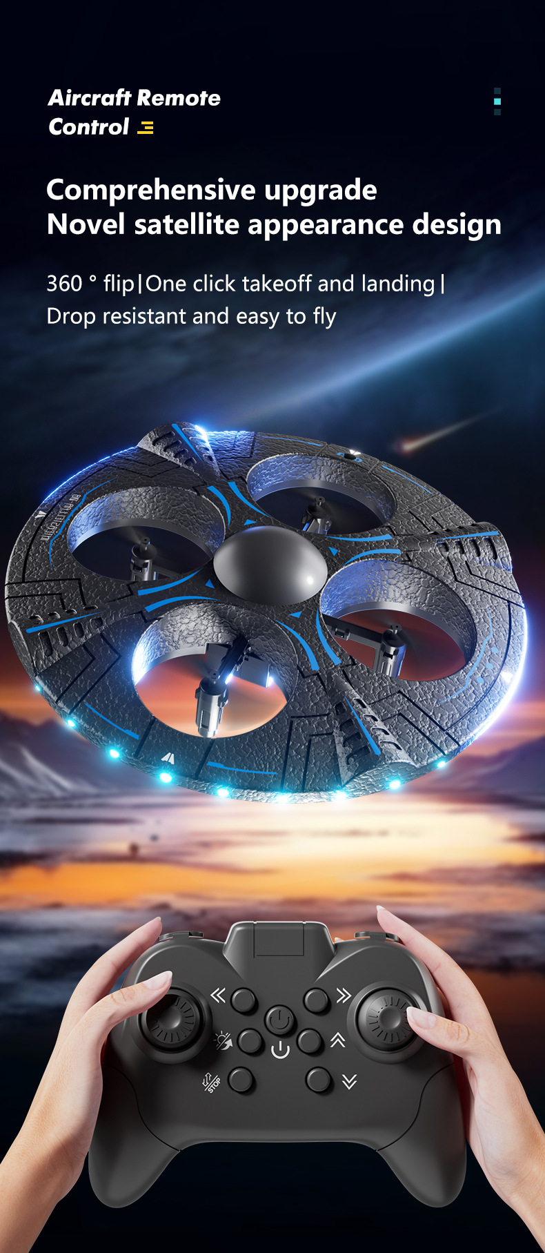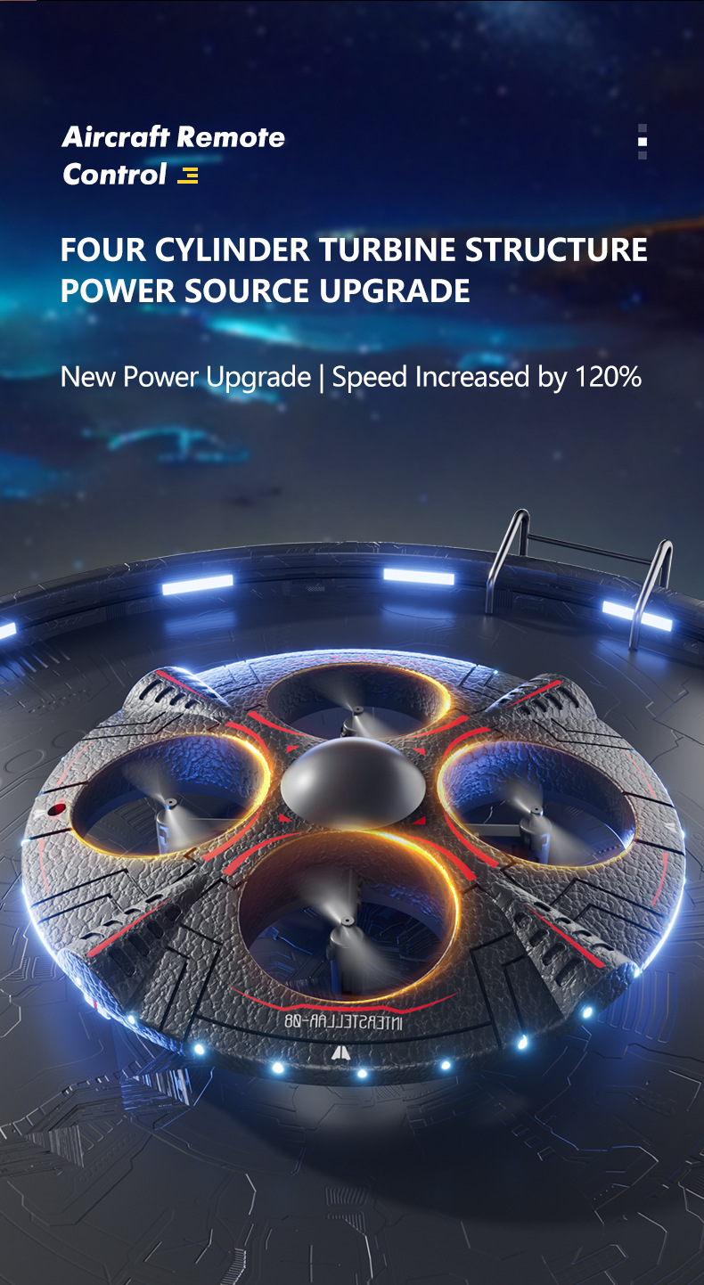 국경 간 UFO 원격 제어 드론 4 축 원격 제어 전투기 다채로운 조명 모델 항공기 원격 제어 항공기 장난감스토어 가기