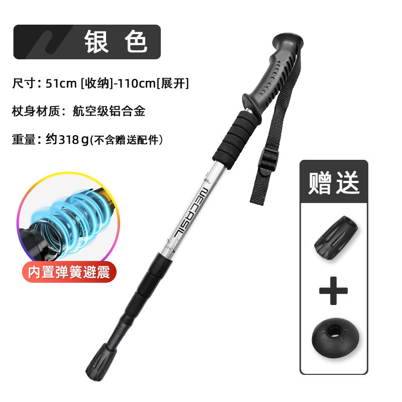 • 4개 섹션 텔레스코픽 | 스트레이트 핸들 실버 50-110cm (충격 흡수 시스템 내장)