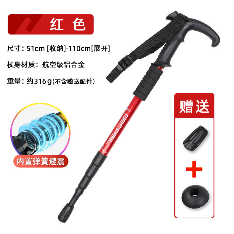 • 4개 섹션 텔레스코픽 | 곡선형 핸들 레드 50-110cm (충격 흡수 시스템 내장)