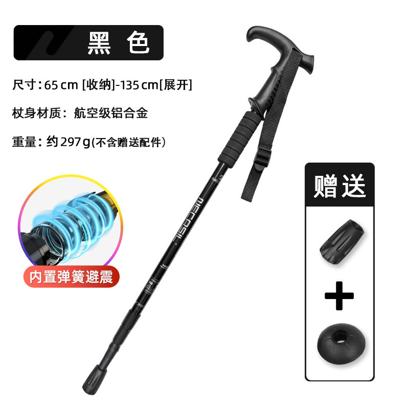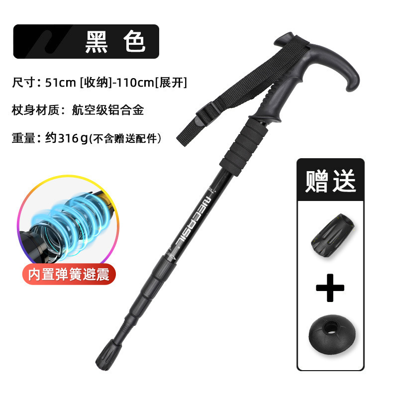 • 4개 섹션 텔레스코픽 | 곡선형 핸들 블랙 50-110cm (충격 흡수 시스템 내장)