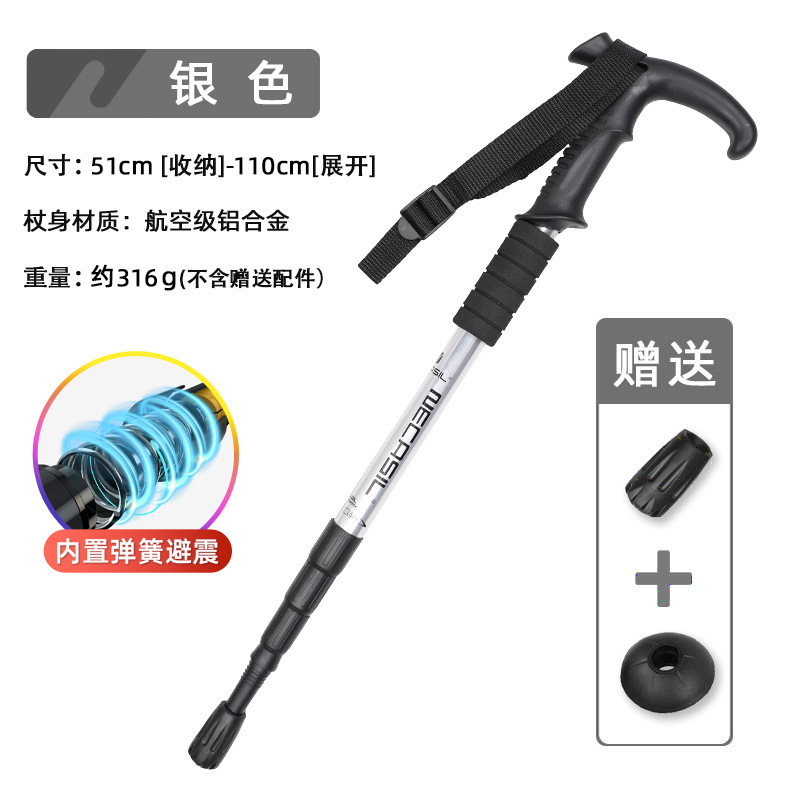 • 4개 섹션 텔레스코픽 | 곡선형 핸들 실버 50-110cm (충격 흡수 시스템 내장)
