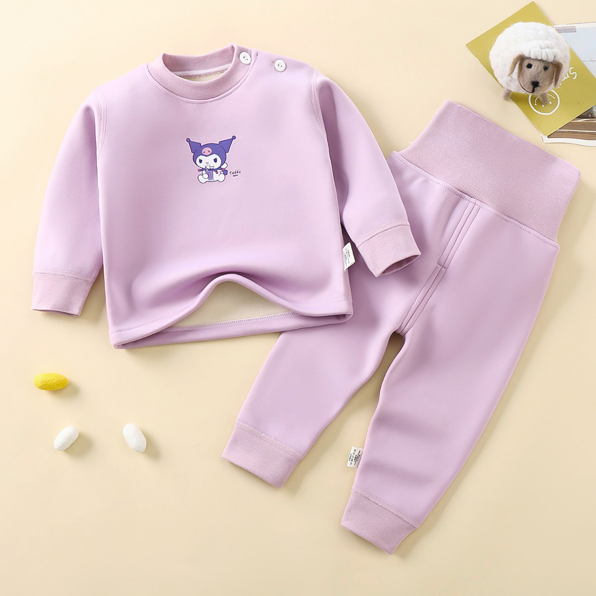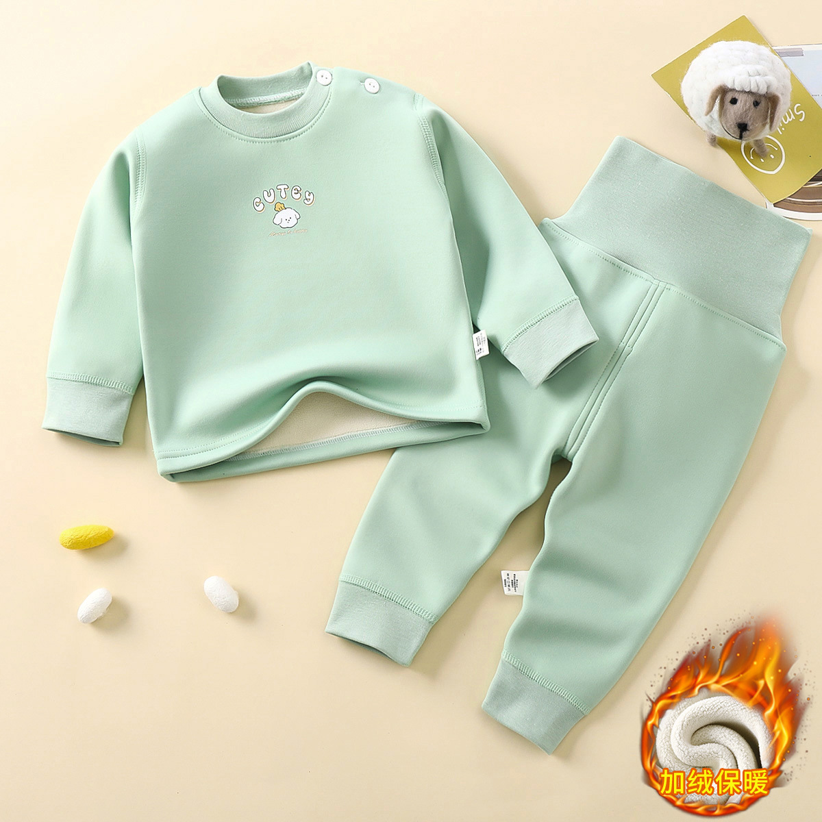 어린이 벚꽃 벨벳 가정 의류 세트 높은 허리 배꼽 보호 가을, 겨울 벨벳 두꺼운 따뜻한 소년과 소녀 속옷 잠옷