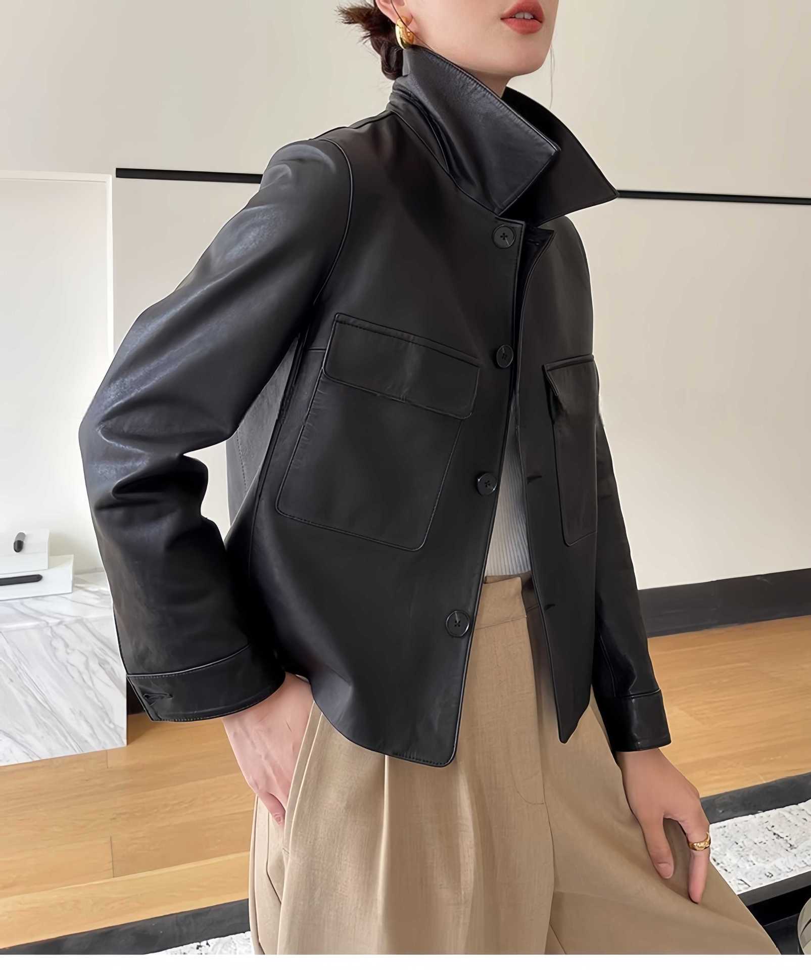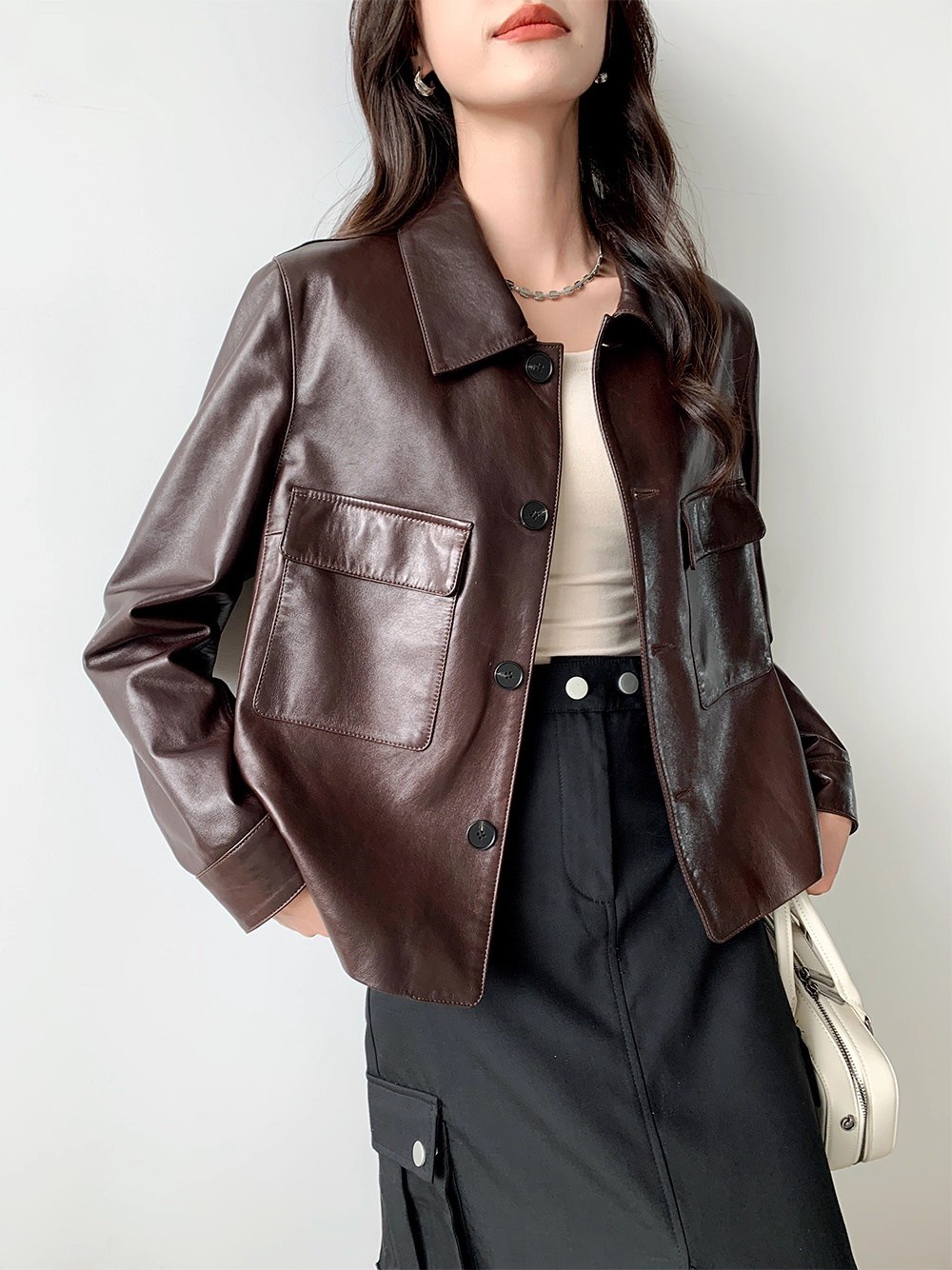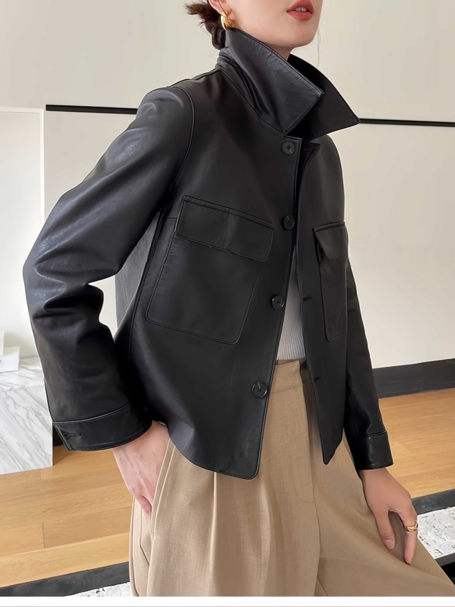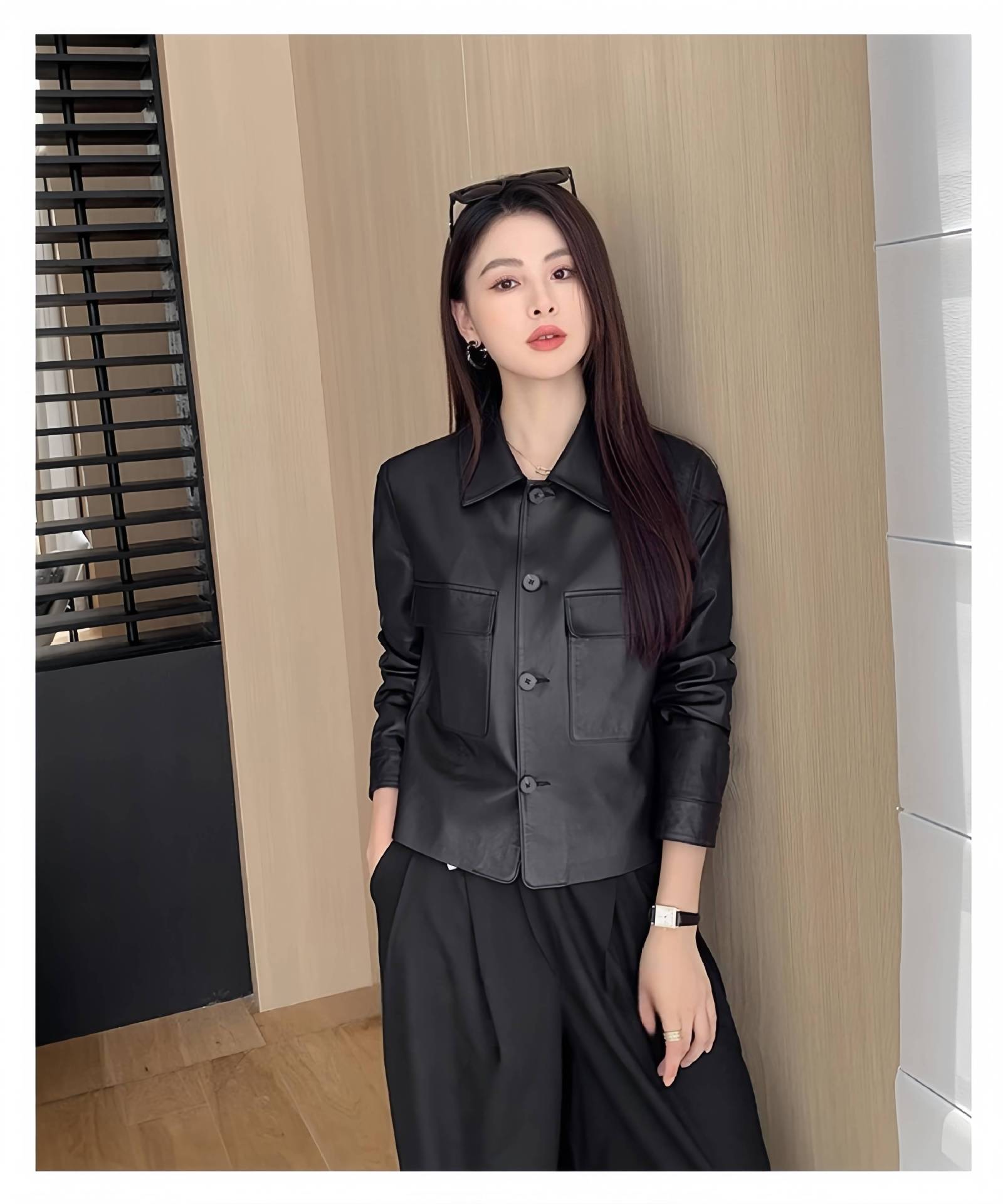 [한국오니] Haining 2025 가을 겨울 베지터블 태닝 양가죽 가죽 자켓 여성 가죽 자켓 가을 겨울 쇼트