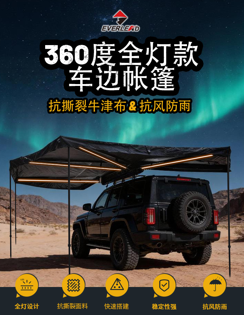 새로운 360 전체 조명 뼈없는 부채꼴 자동차 사이드 텐트 캠핑 대형 공간 야외 방수 캠핑 자동차 텐트스토어 가기