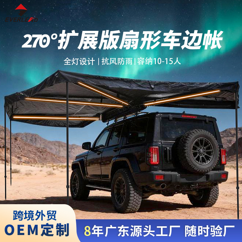 새로운 360 전체 조명 뼈없는 부채꼴 자동차 사이드 텐트 캠핑 대형 공간 야외 방수 캠핑 자동차 텐트