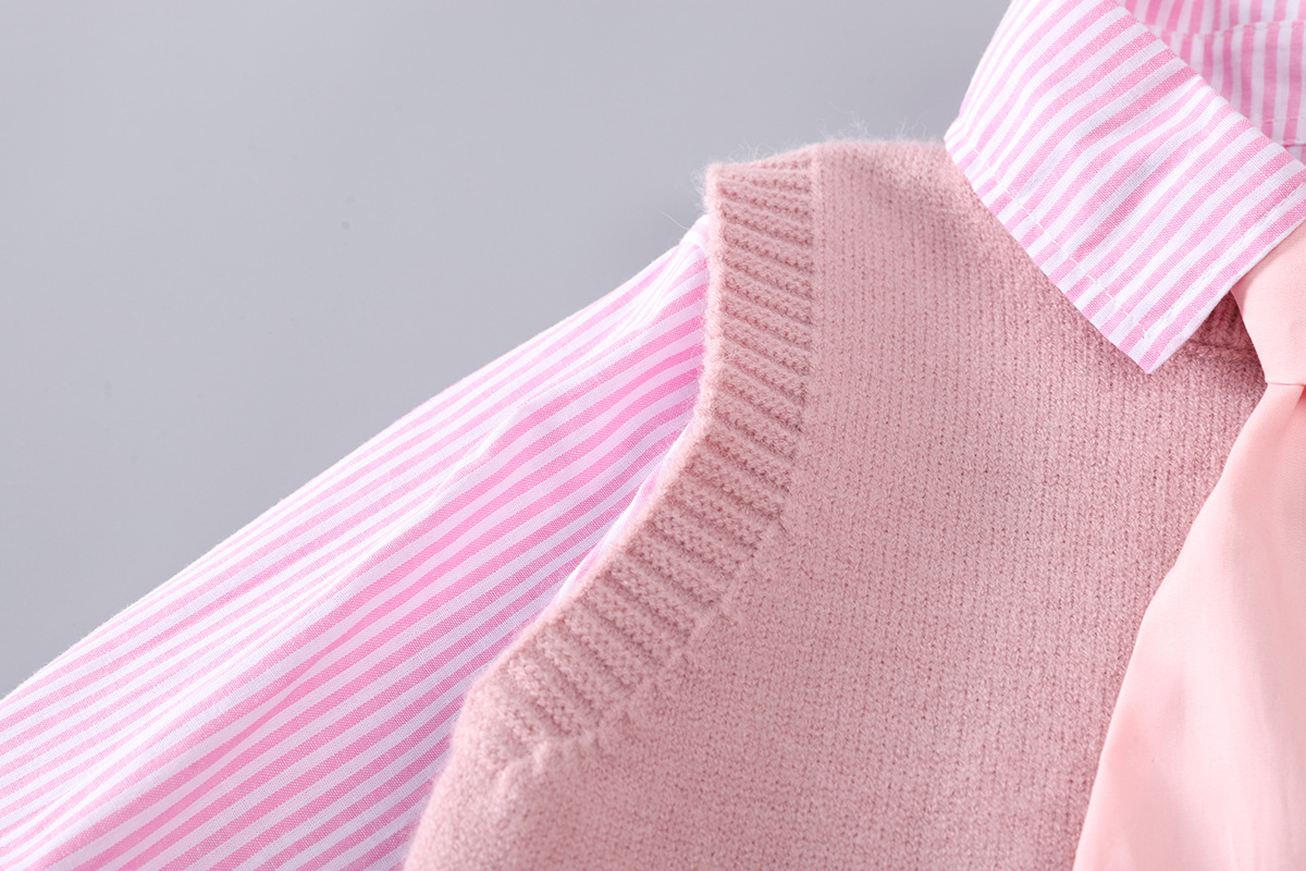 소년 가을 솔리드 컬러 니트 스웨터 조끼 정장 2025 새로운 아기 봄, 가을 넥타이 셔츠 3 피스 세트