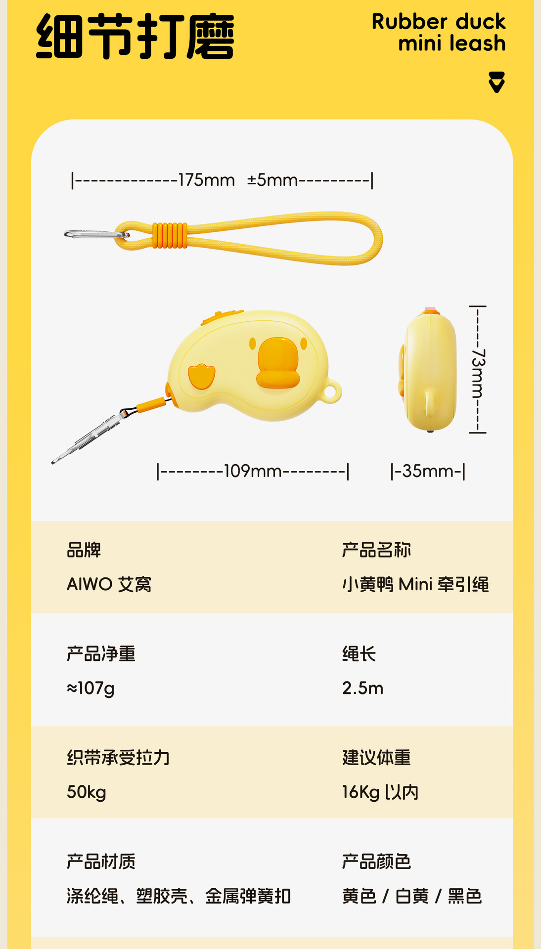• 작은 노란 오리 가죽끈-노란색