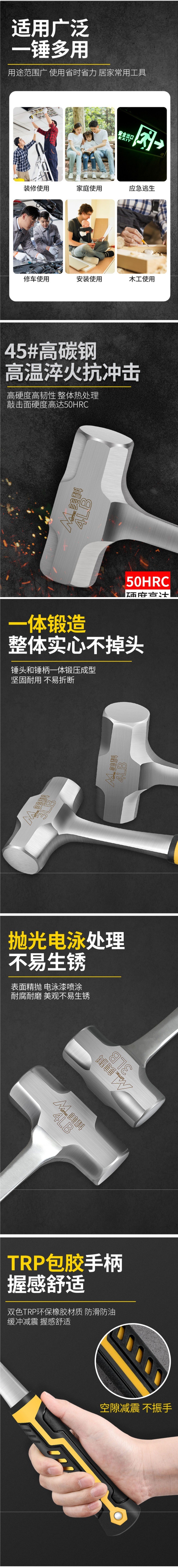 • [핸들 제거] 업그레이드된 일체형 해머 4파운드(반전)