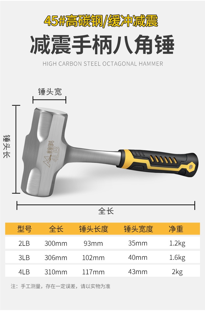 도매 팔각형 망치 3파운드 핸드 해머 일체형 석공 해머 벽 파괴 도구 철 손잡이 대형 망치 강철 망치 망치 결합 망치 헤드스토어 가기