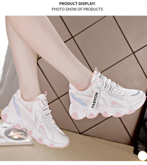 여성용 아빠 신발 트렌드 2025 봄 새로운 두꺼운 밑창 키가 큰 흰색 신발 캐주얼 통기성 여성 운동화스토어 가기