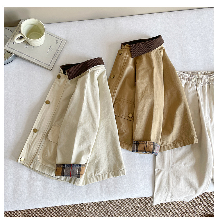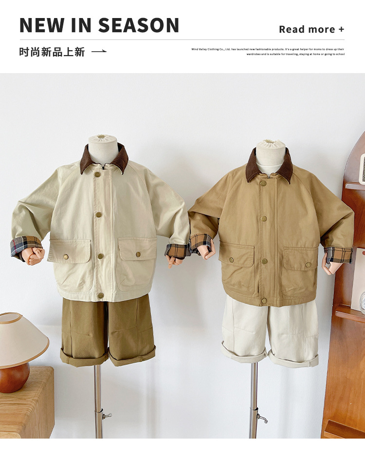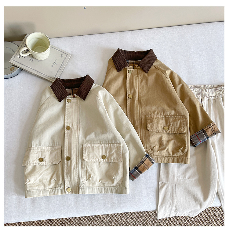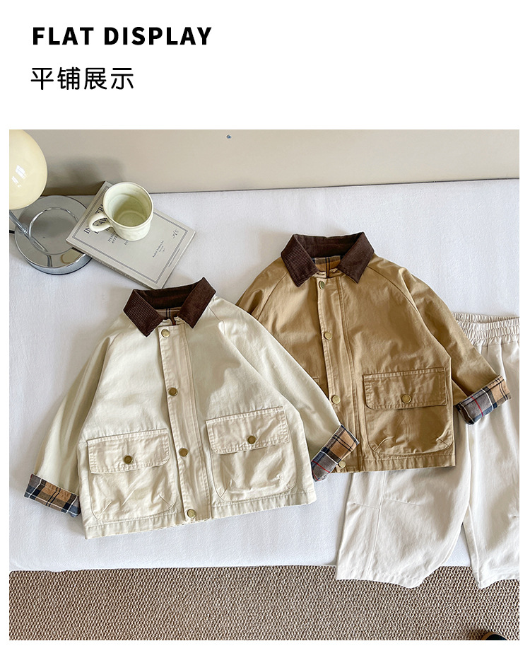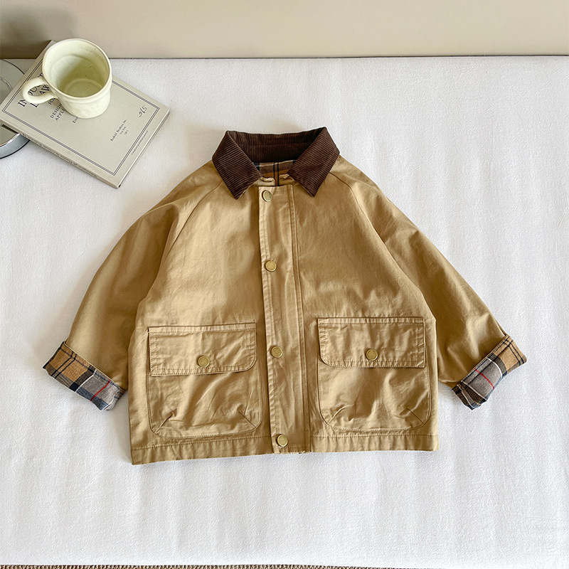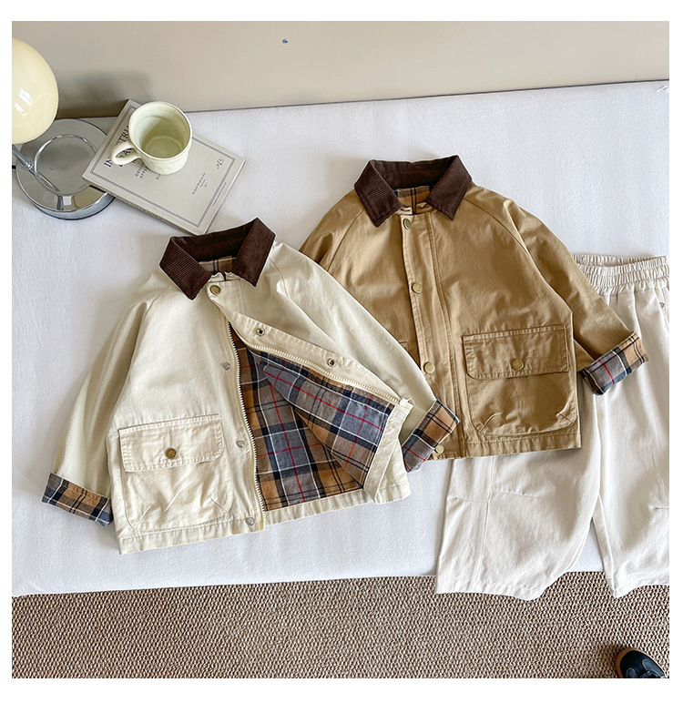 Xian'ao 2025 가을 신작 아동복 아동용 일본 및 한국 다용도 영국 스타일 재킷 소년 격자 무늬 스플 라이스 재킷