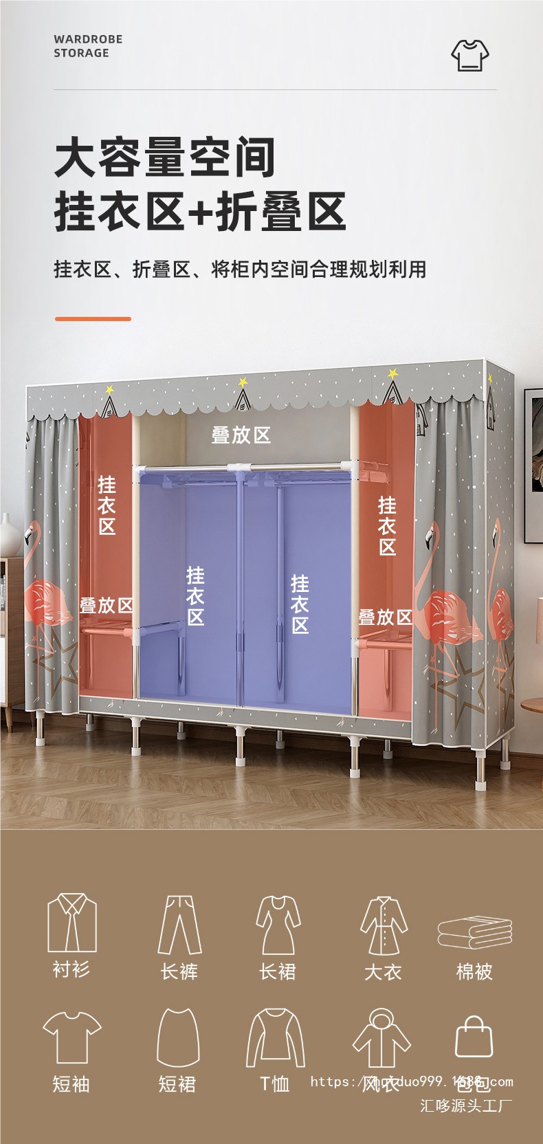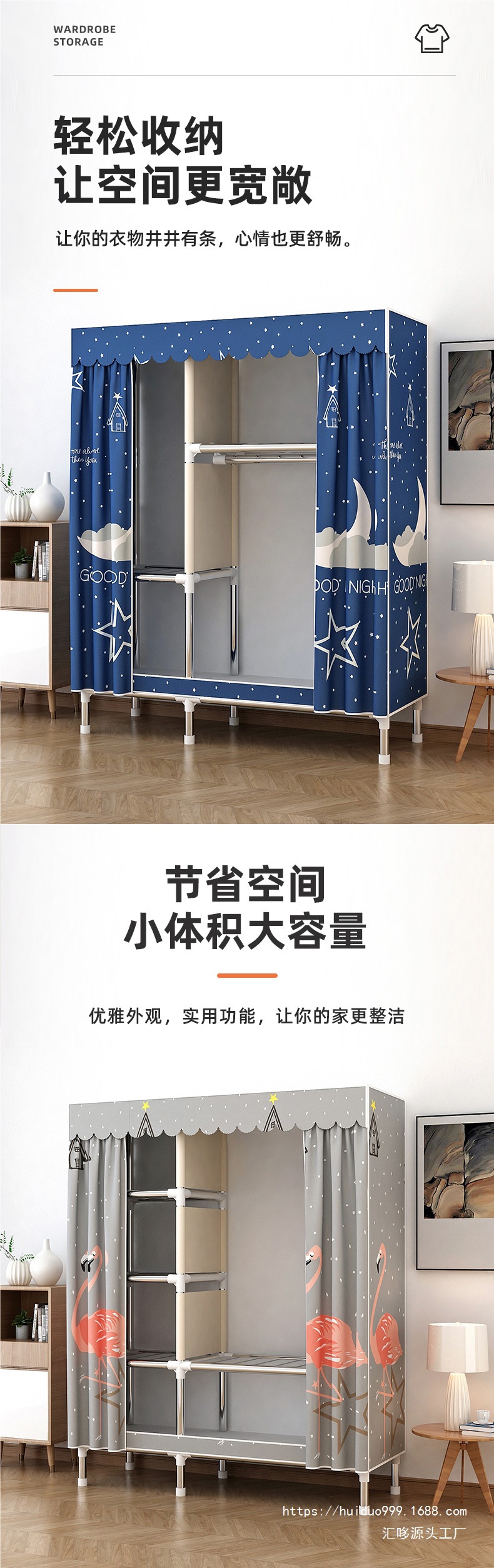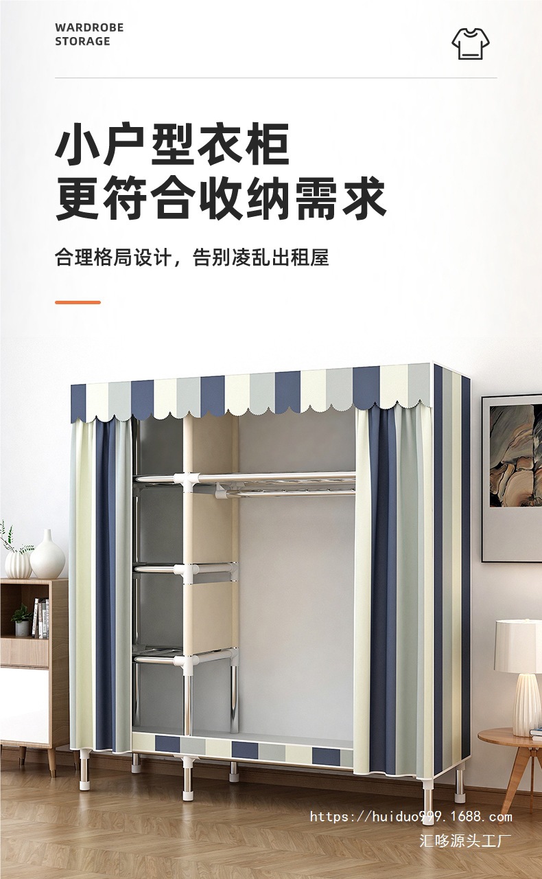 가정용 침실 임대실을 위한 간단한 천 옷장, 강철 프레임, 견고하고 내구성이 뛰어난 소형 가정용 경제적 인 보관 천 옷장