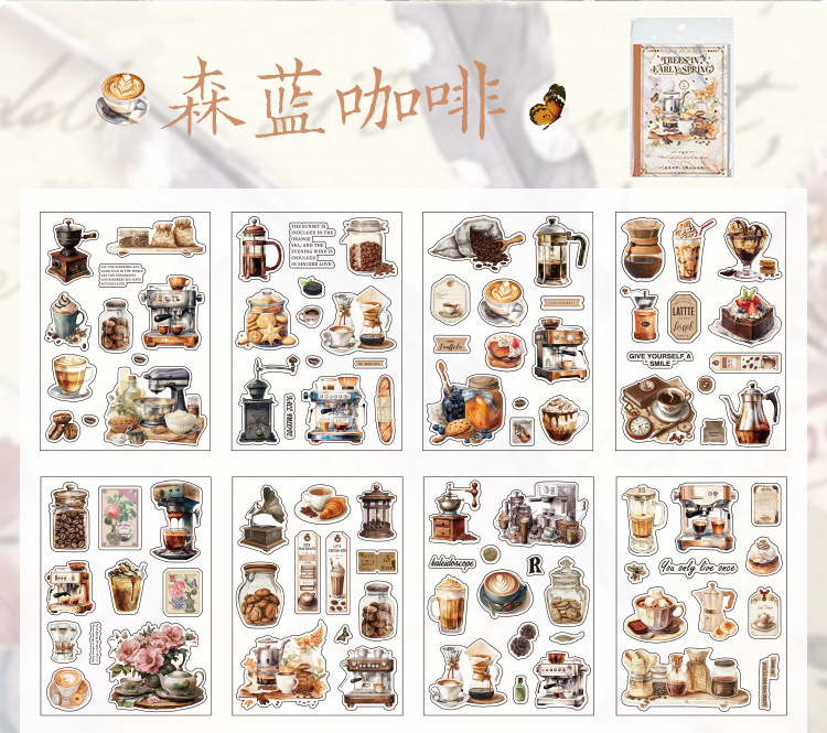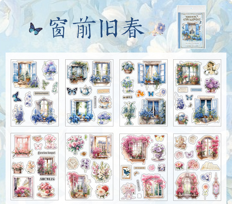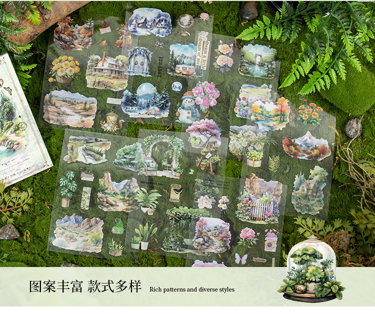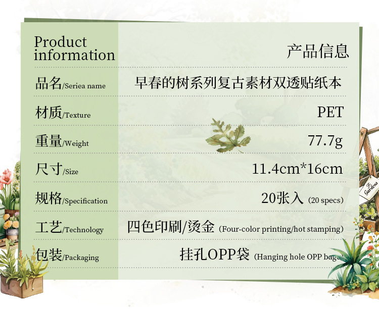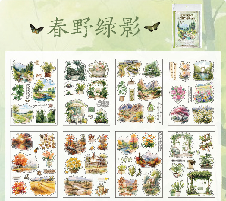 Yuxian 이른 봄 나무 시리즈 복고풍 소재 애완 동물 스티커 예술적 스타일 조경 핸드북 장식 베이스 콜라주스토어 가기