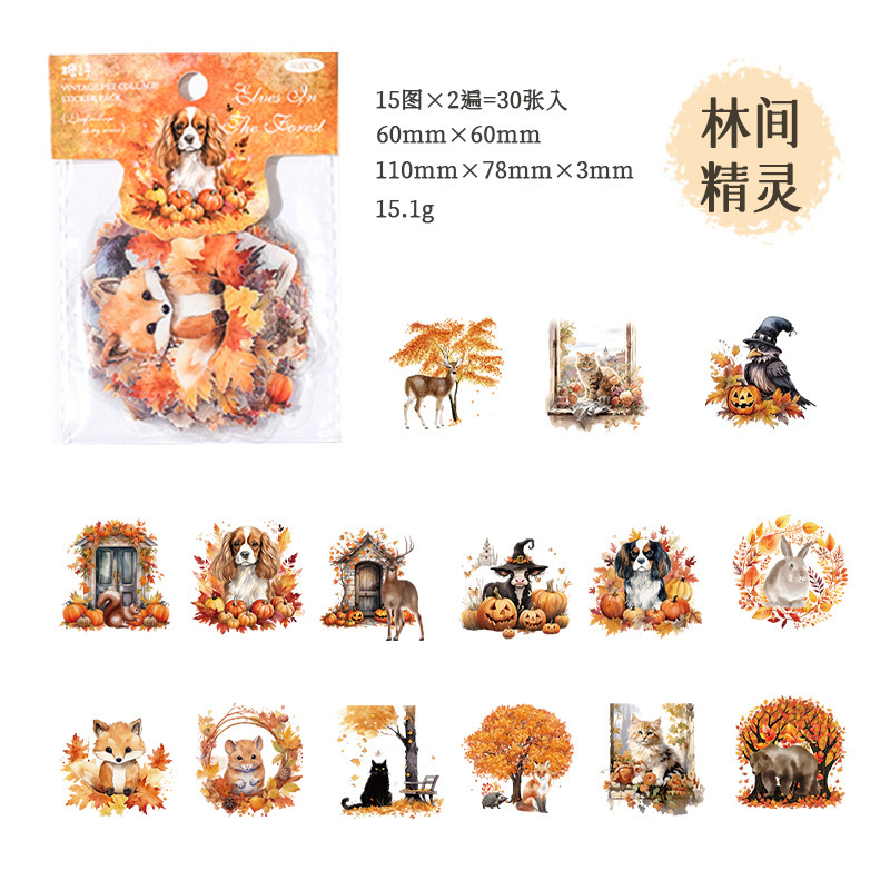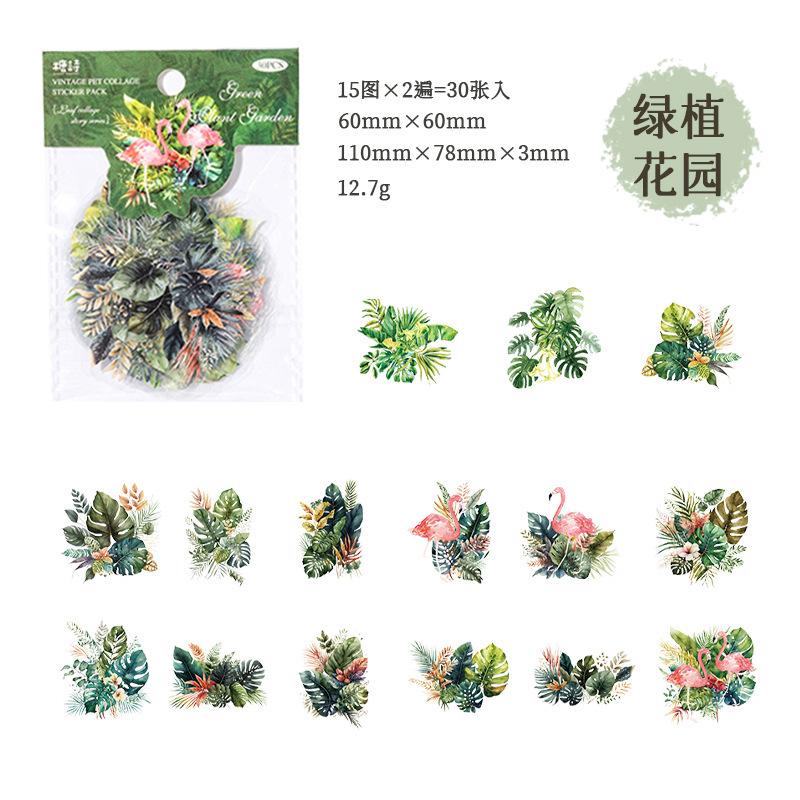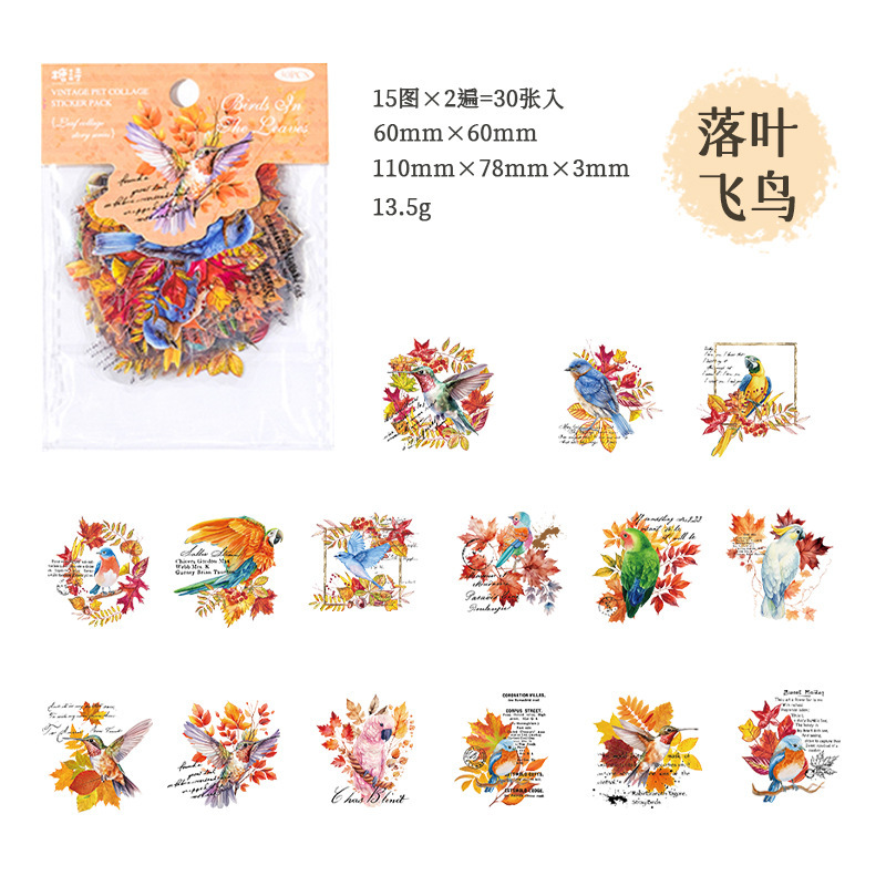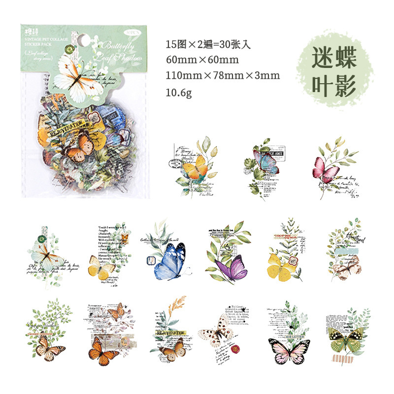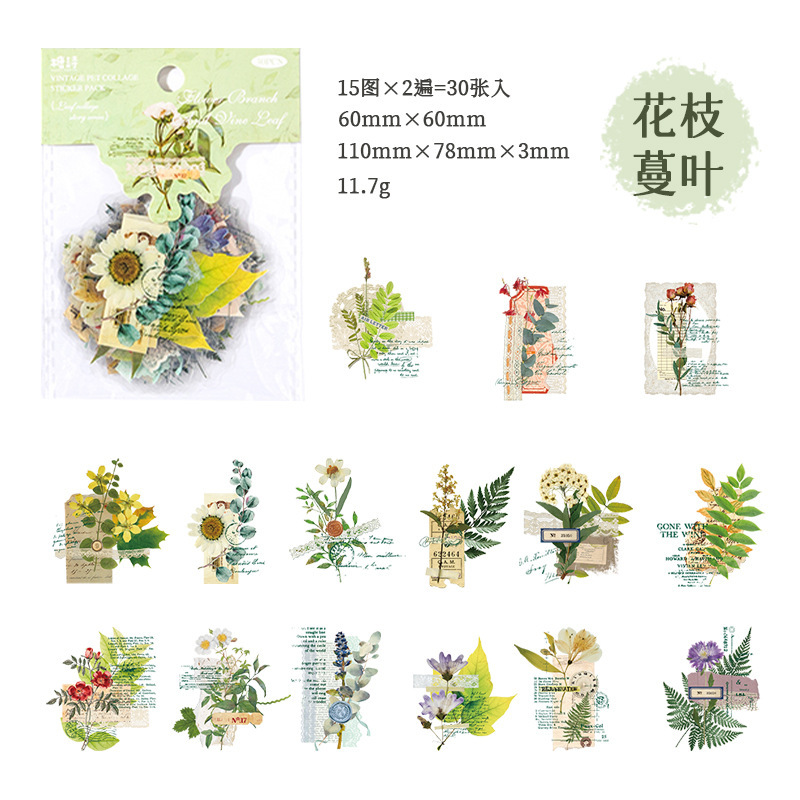 Sugar Poetry Leaf Collage Story 시리즈 PET 스티커 팩 복고풍 콜라주 핸드북 장식 재료 6가지 스타일로 30개