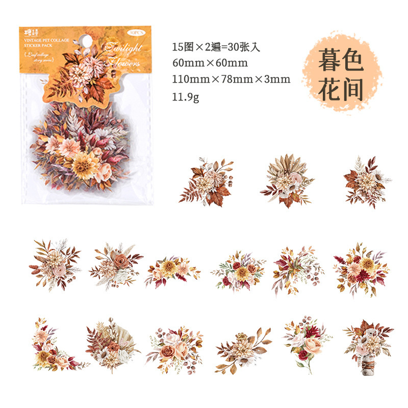 Sugar Poetry Leaf Collage Story 시리즈 PET 스티커 팩 복고풍 콜라주 핸드북 장식 재료 6가지 스타일로 30개스토어 가기