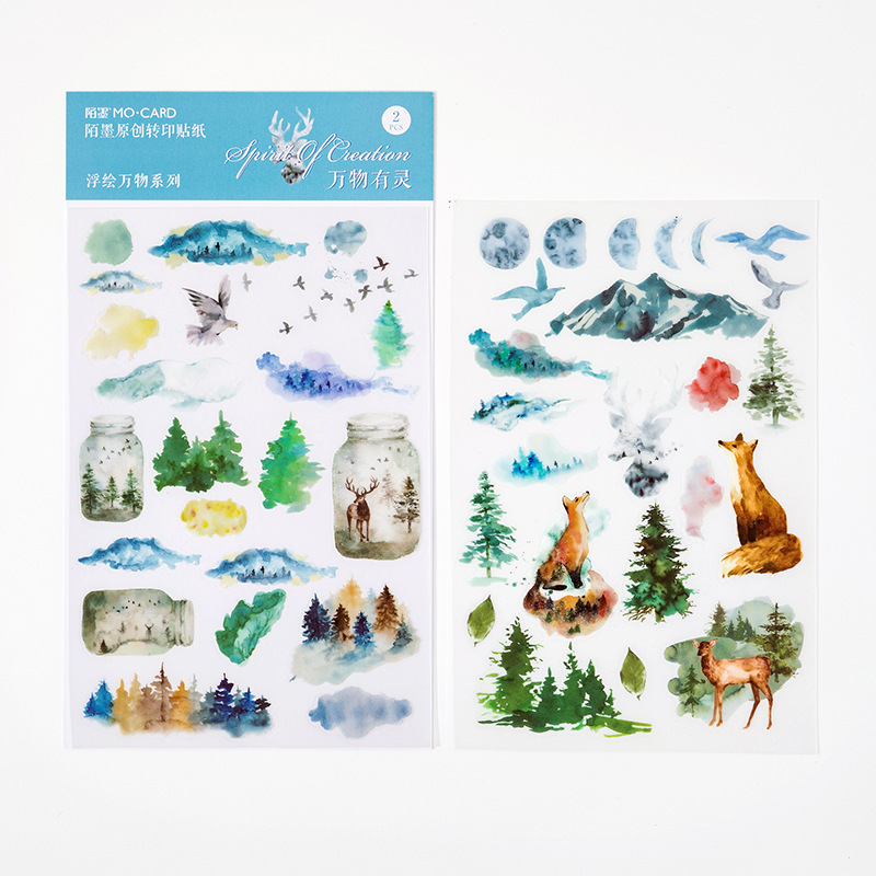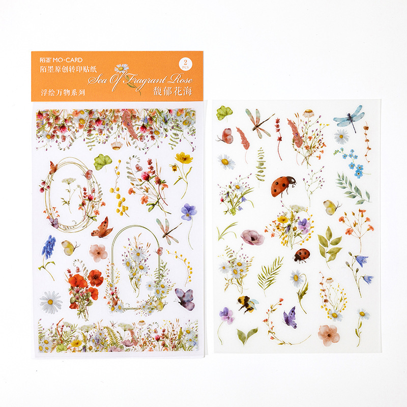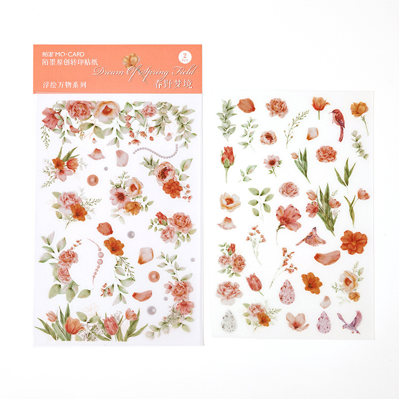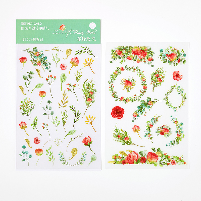 모모 플로팅 페인팅 올 시리즈 전사 스티커 식물 핸드북 장식 재료 스티커 2개입 8가지 옵션