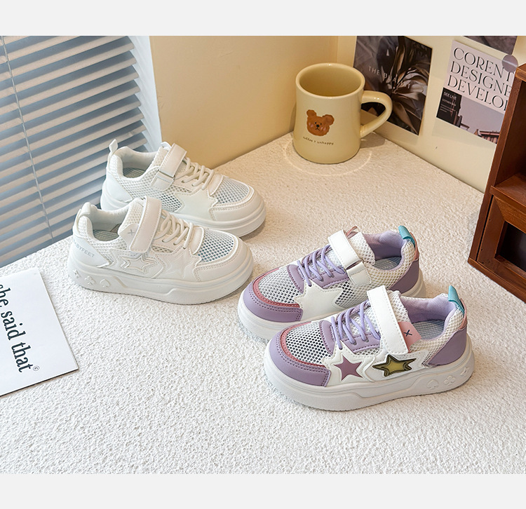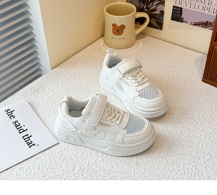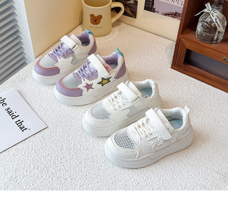여자 운동화 2025 봄 신작 어린이 신발 흰색 신발 소년 캐주얼 신발 부드러운 밑창 스타 운동화