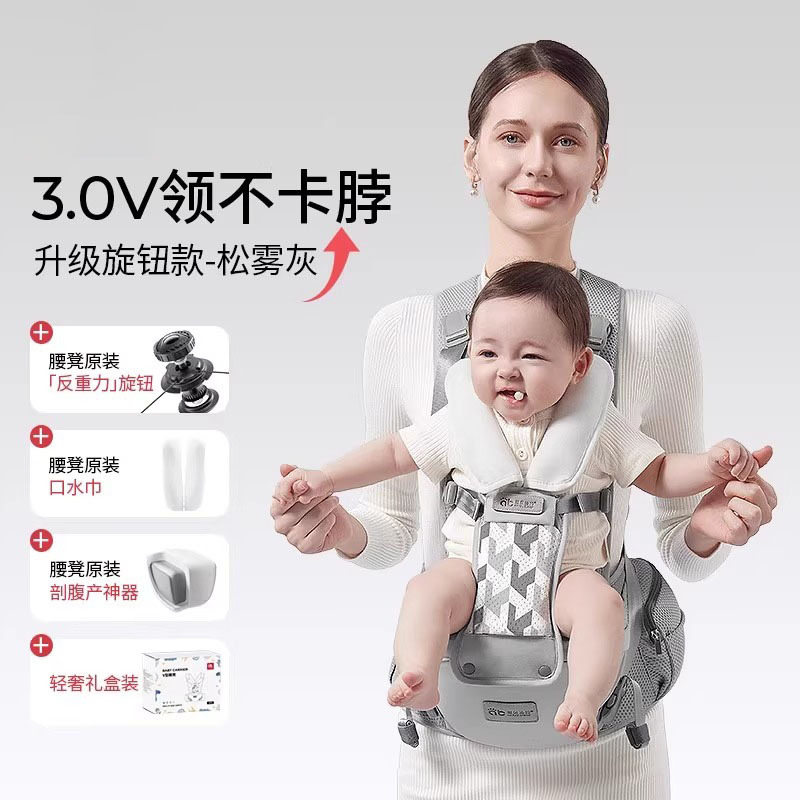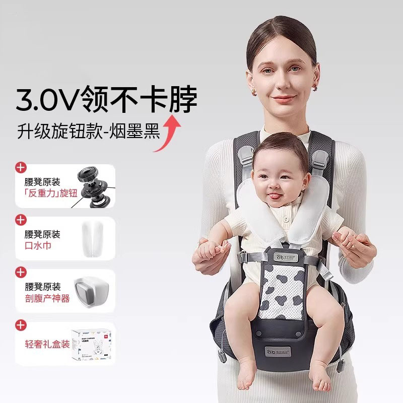 아기 허리 스툴 캐리어 2-in-1 경량 4계절 아기 외출용 아기 포옹 도구 자동 회전 버클스토어 가기