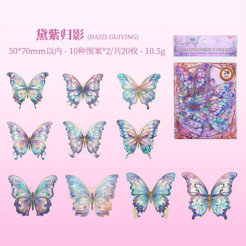 ZABC 국경 간 금박 나비 꿈 시리즈 스티커 팩 나비 쉘 빛 입체 핫 스탬핑 핸드북 장식 재료스토어 가기