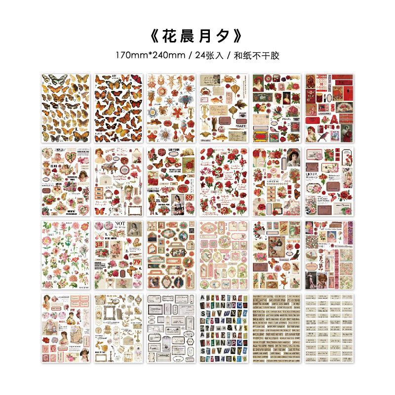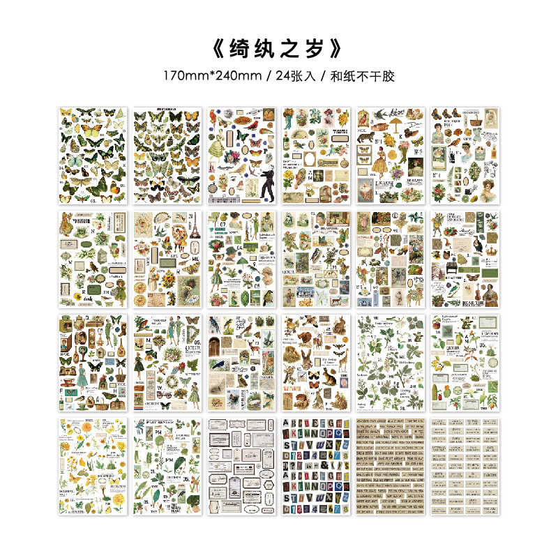 Yanji 스티커 아름다운 컬렉션 시리즈 미국 문학 복고풍 DIY 핸드북 장식 재료 스티커 3 스타일스토어 가기