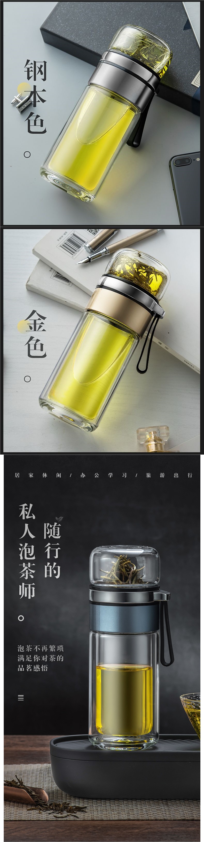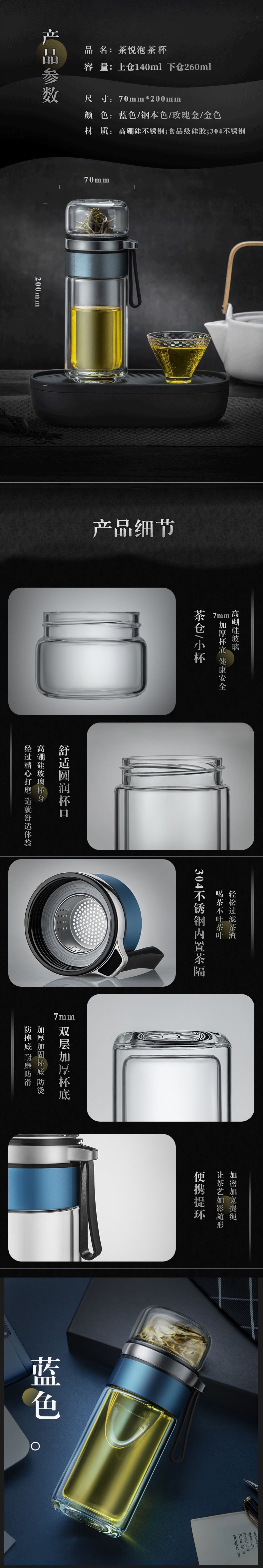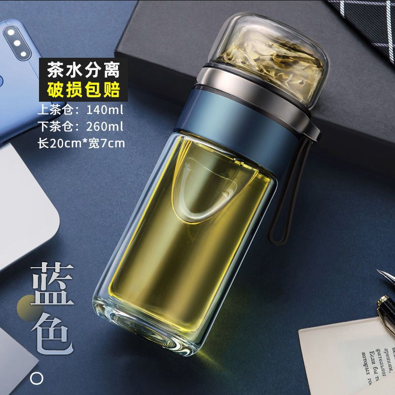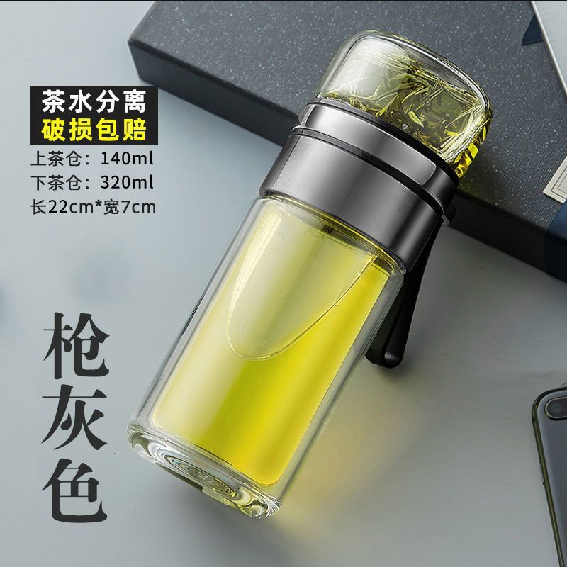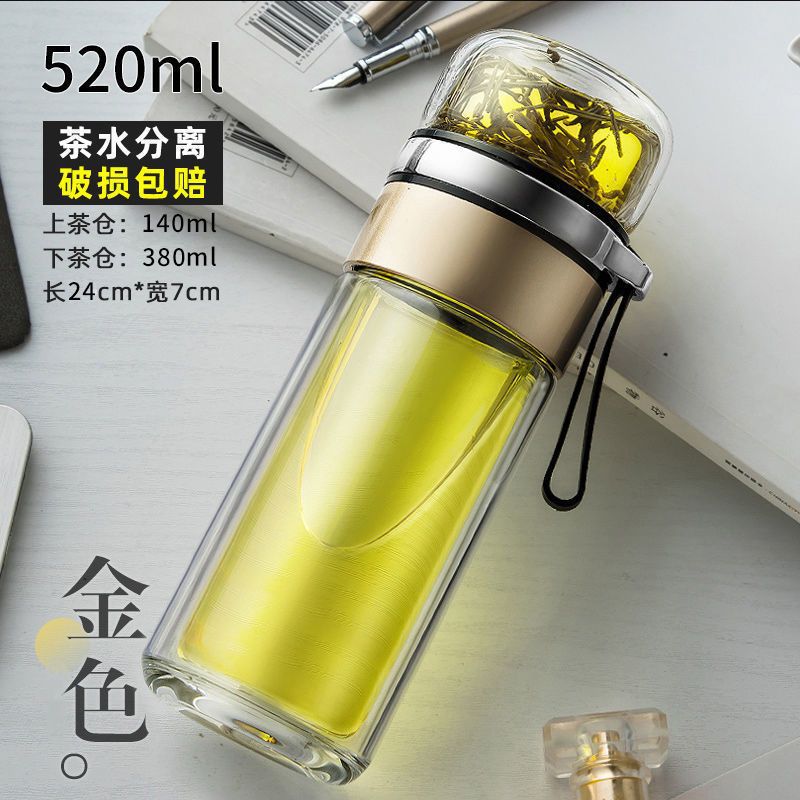 高档茶水分离杯双层隔热网红玻璃杯简约泡茶杯子男女便携水杯钉制