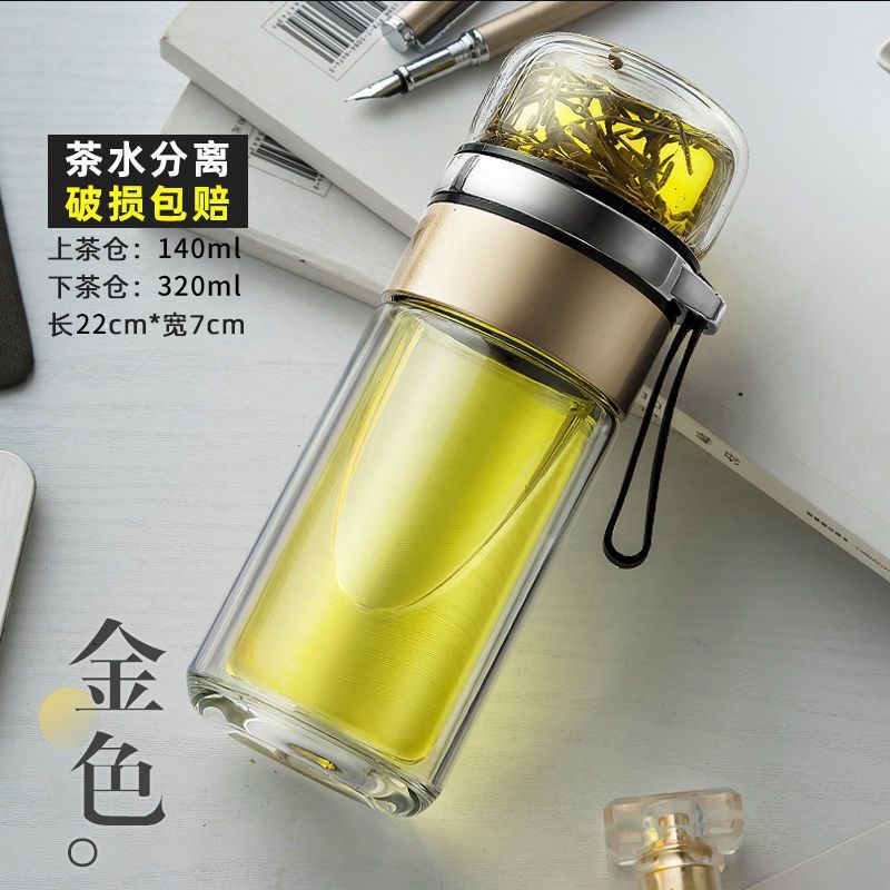 高档茶水分离杯双层隔热网红玻璃杯简约泡茶杯子男女便携水杯钉制스토어 가기