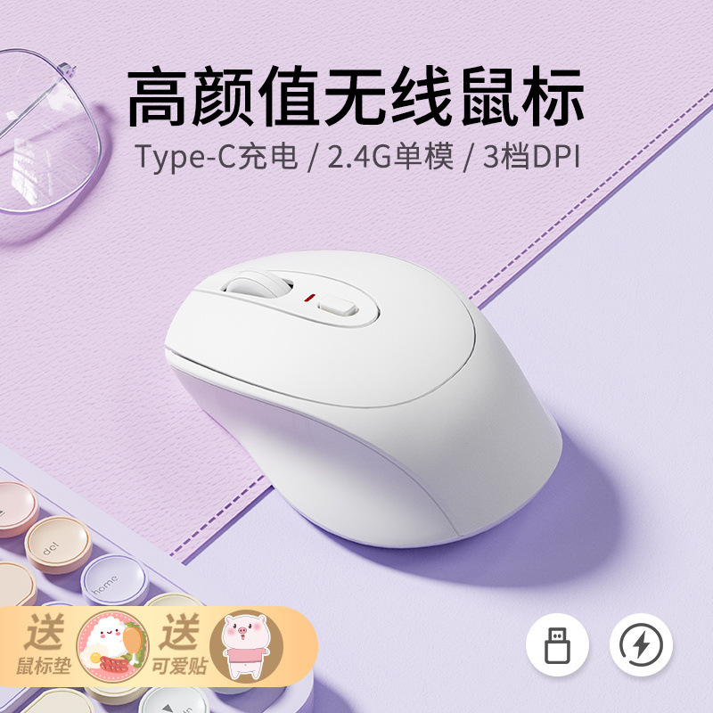 • 사쿠라 핑크 [충전식 모델] 무음 버튼 + 무료 귀여운 마우스 패드 - [공식 정품] 2년 보증/빠른 배송