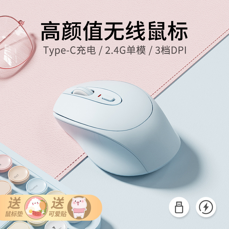 • 스카이블루 [충전모델] 무음버튼 + 귀여운 마우스패드 증정 - [공식정품] 2년보증/빠른배송