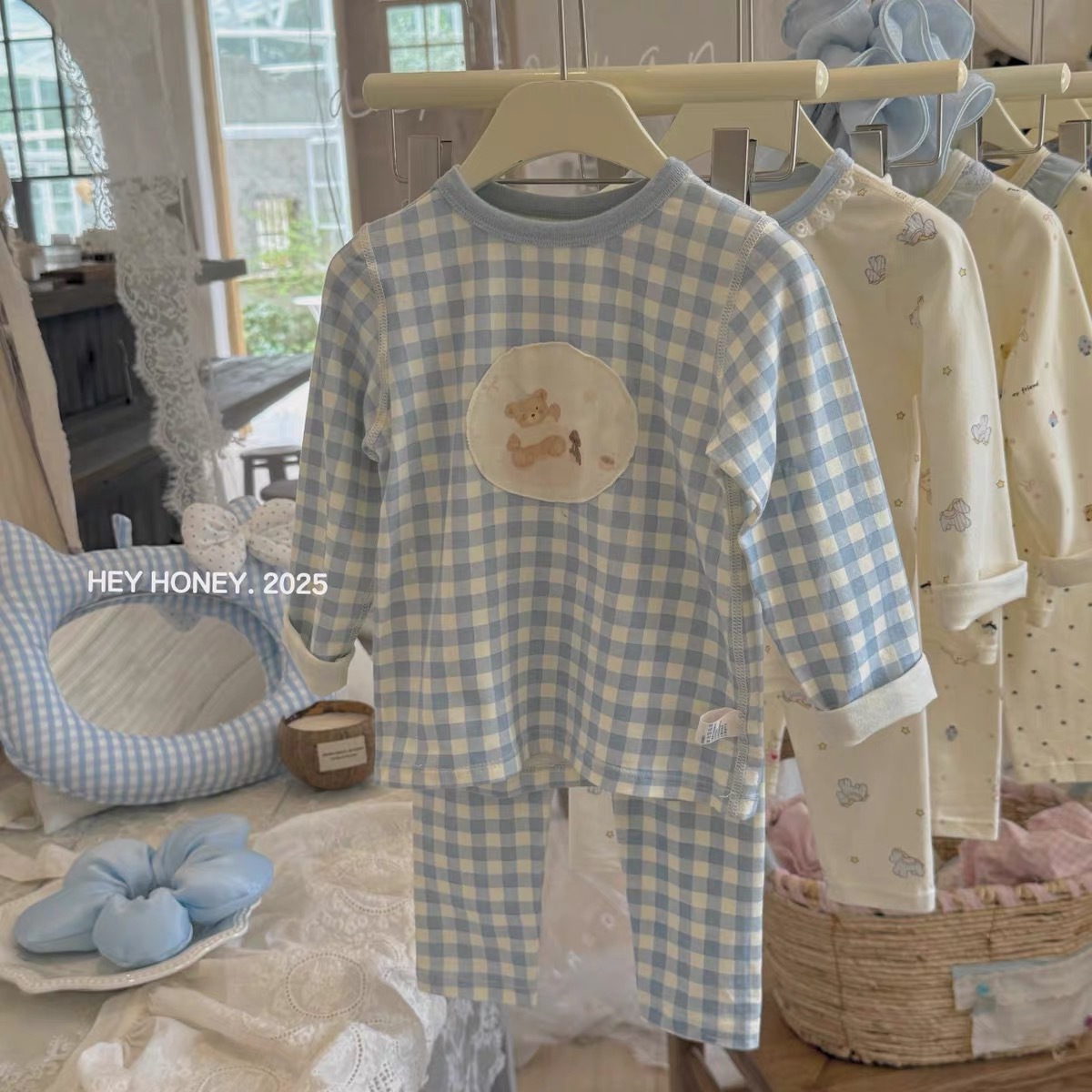 • 파란색 격자 무늬 곰